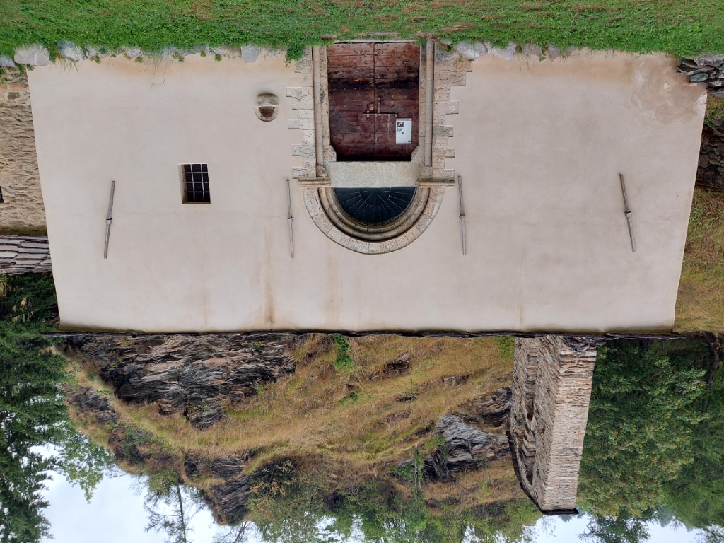 Notizie generali: Discosta dall’attuale abitato di Casteldelfino, la cappella sorge al disotto dello sperone roccioso su cui restano i ruderi dell’antico castello delfinale. |