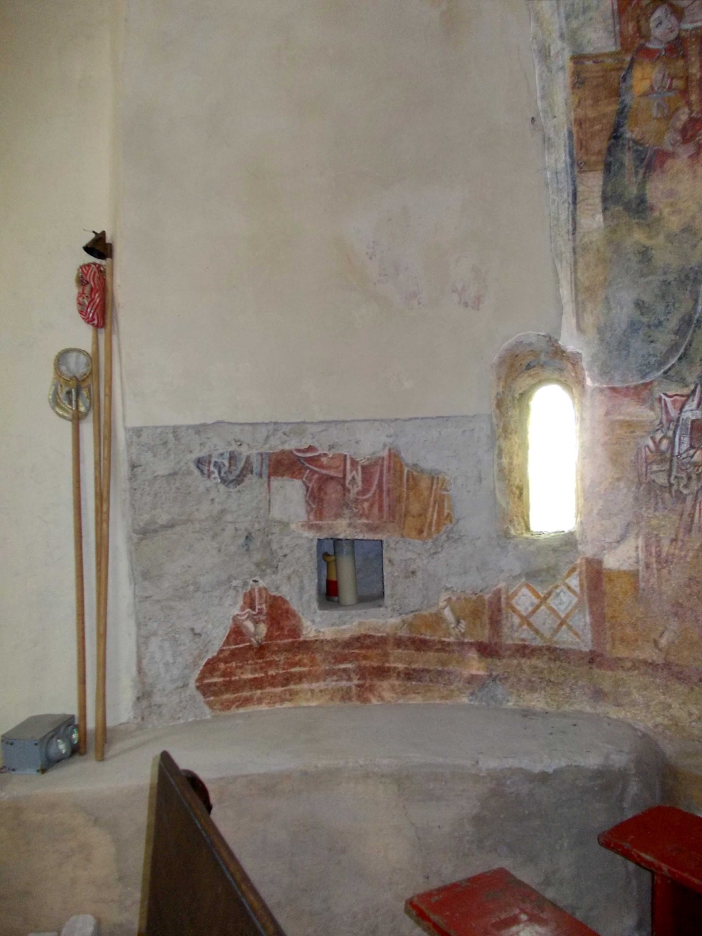 Interno: nella zona absidale tracce di affreschi di stile romanico, databili XII-XIII secolo. |