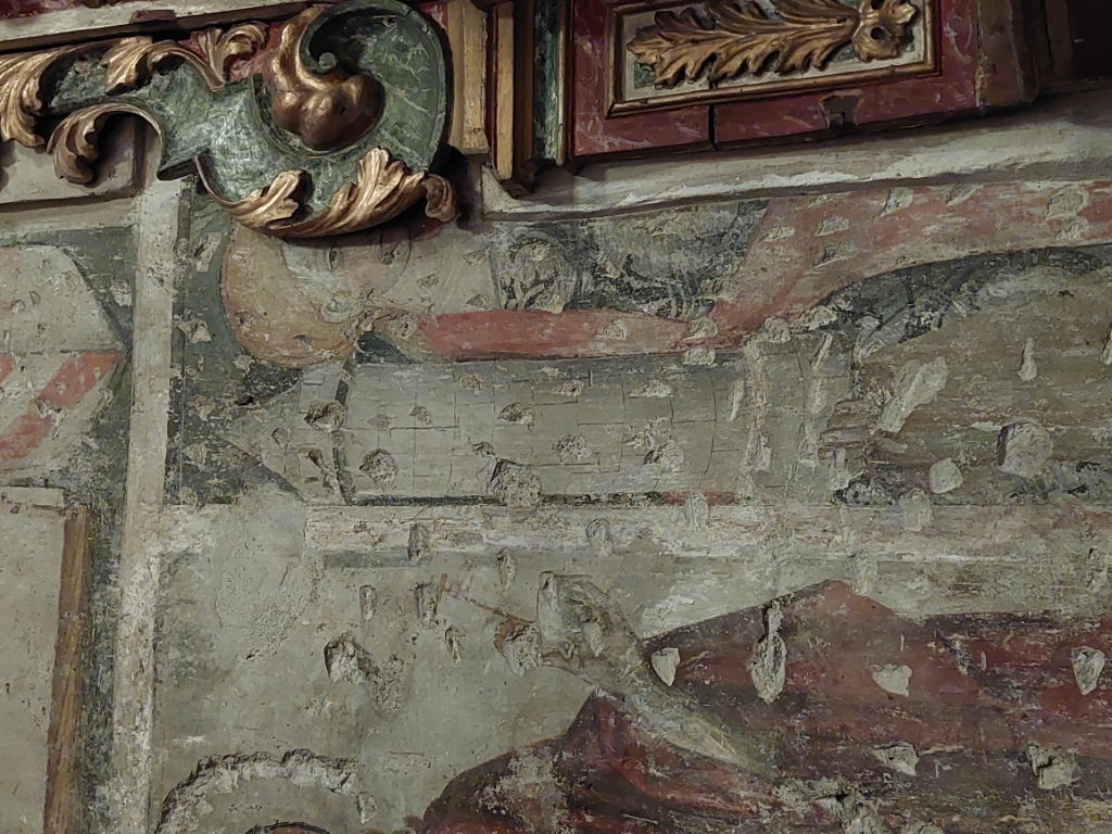 Interno: una cappella laterale presenta una doppia stratificazione di affreschi di cui il primo strato risalirebbe all'inizio del '400. |