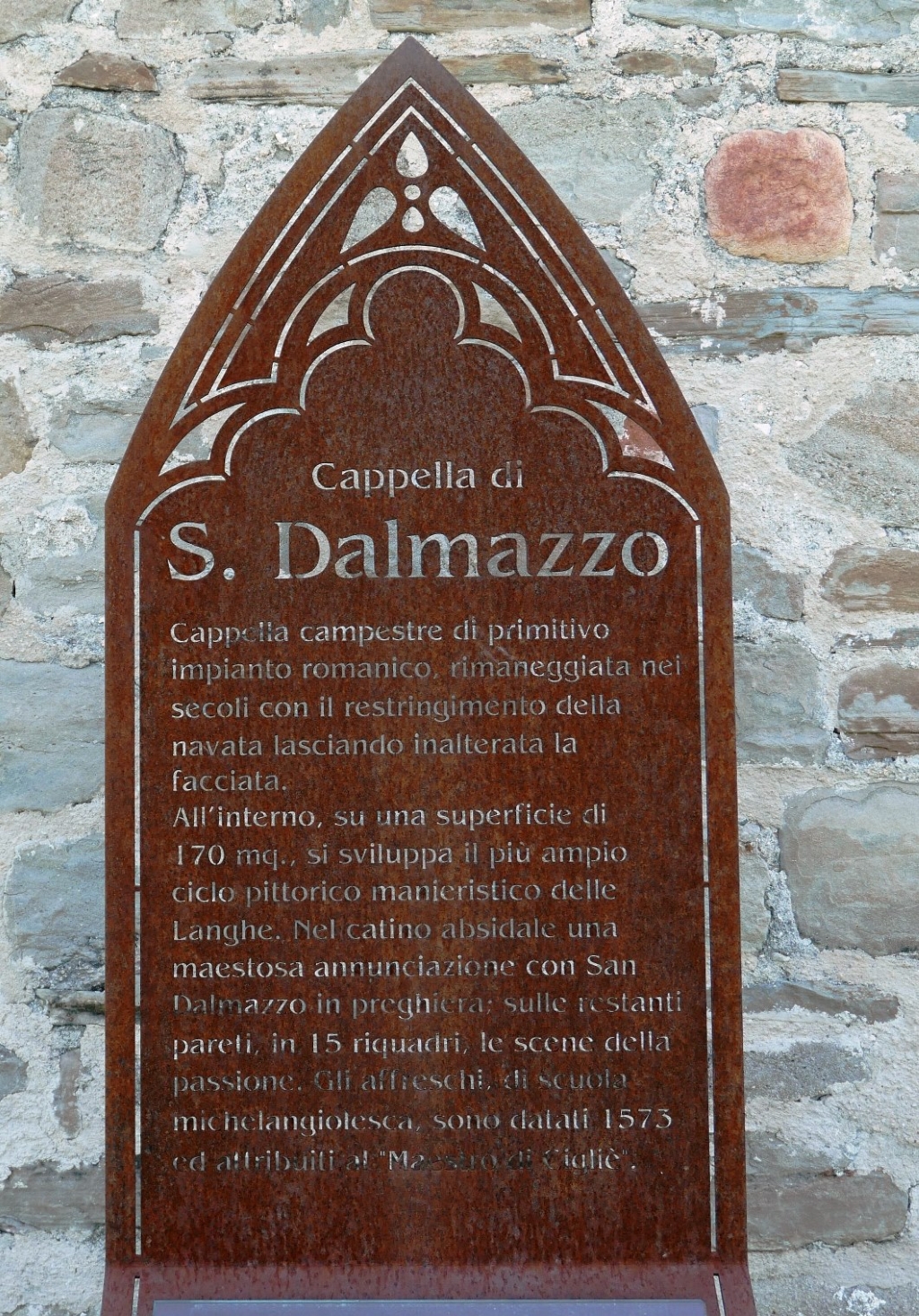 La Cappella si trova a Peironi, Cigliè (CN), nota come San Dalmazzo. Periodo prevalente: XV secolo. Livello di interesse: 1 (Interessante). Elementi presenti: pittura. Da vedere: interno.