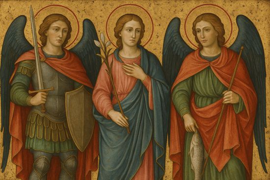 Nel cristianesimo, Michele, Gabriele e Raffaele sono gli unici tre arcangeli menzionati per nome nelle Sacre Scritture. Ciascuno incarna un aspetto specifico dell’agire divino: Michele è il guerriero e custode della giustizia, Gabriele il messaggero del mistero, Raffaele il guaritore e compagno di viaggio. Le loro figure, oltre che nella liturgia e nella devozione popolare, trovano espressione potente nell’iconografia romanica, soprattutto nelle chiese alpine. Michele domina le soglie sacre come difensore contro il male, Gabriele reca l’annuncio dell’Incarnazione, Raffaele si prende cura dell’uomo lungo i sentieri della vita. La loro celebrazione unitaria il 29 settembre è invito a riconoscerli come presenze vive e attuali, guide spirituali tra cielo e terra.