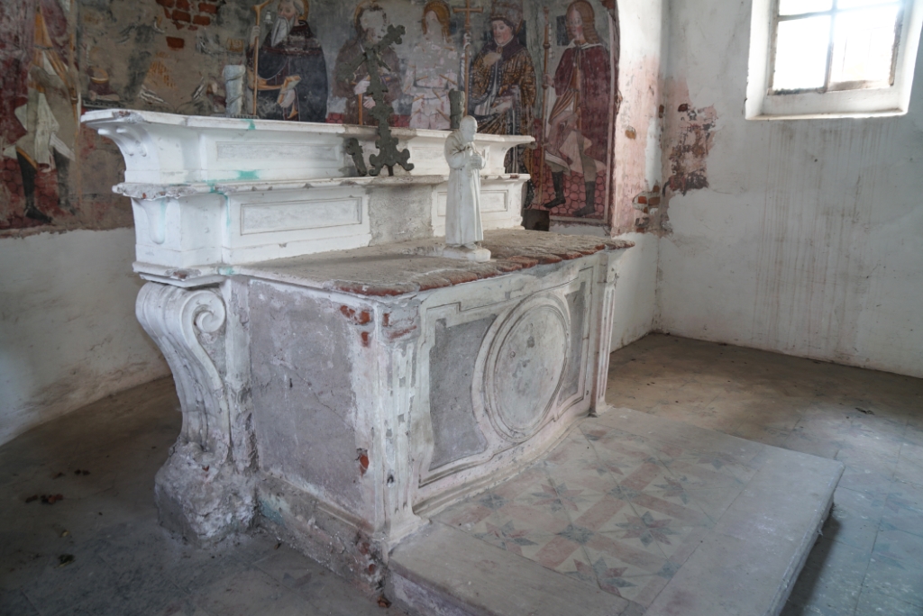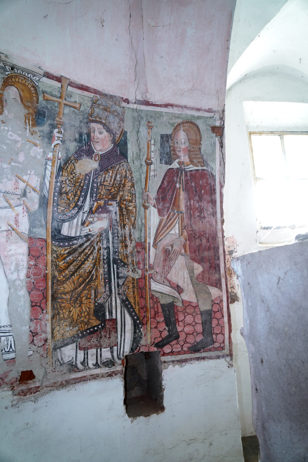 Interno: affreschi del '400 tra cui San Rocco, Sant'Antonio Abate, San Sebastiano e altri santi. |