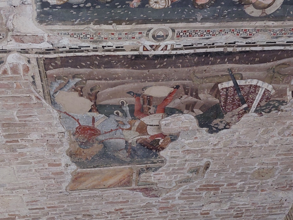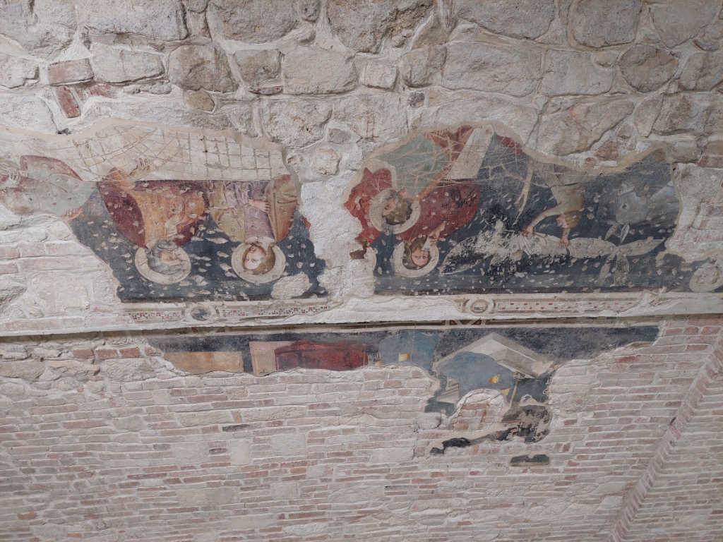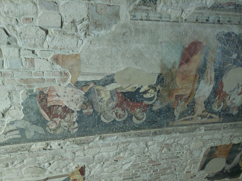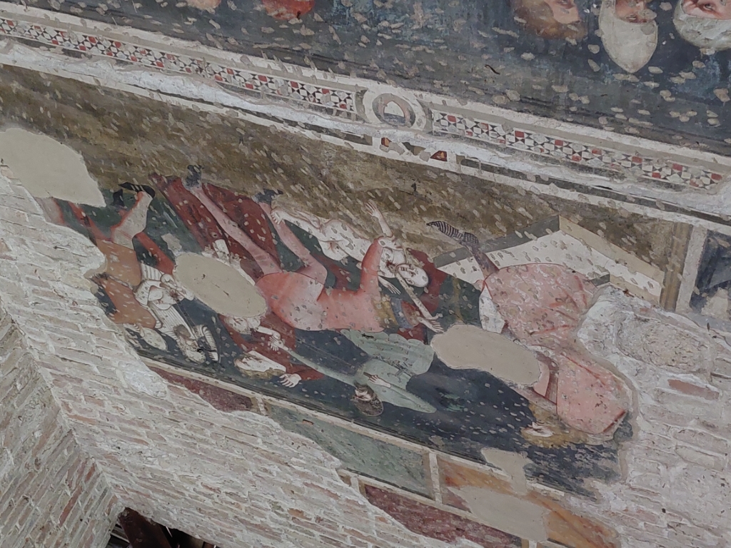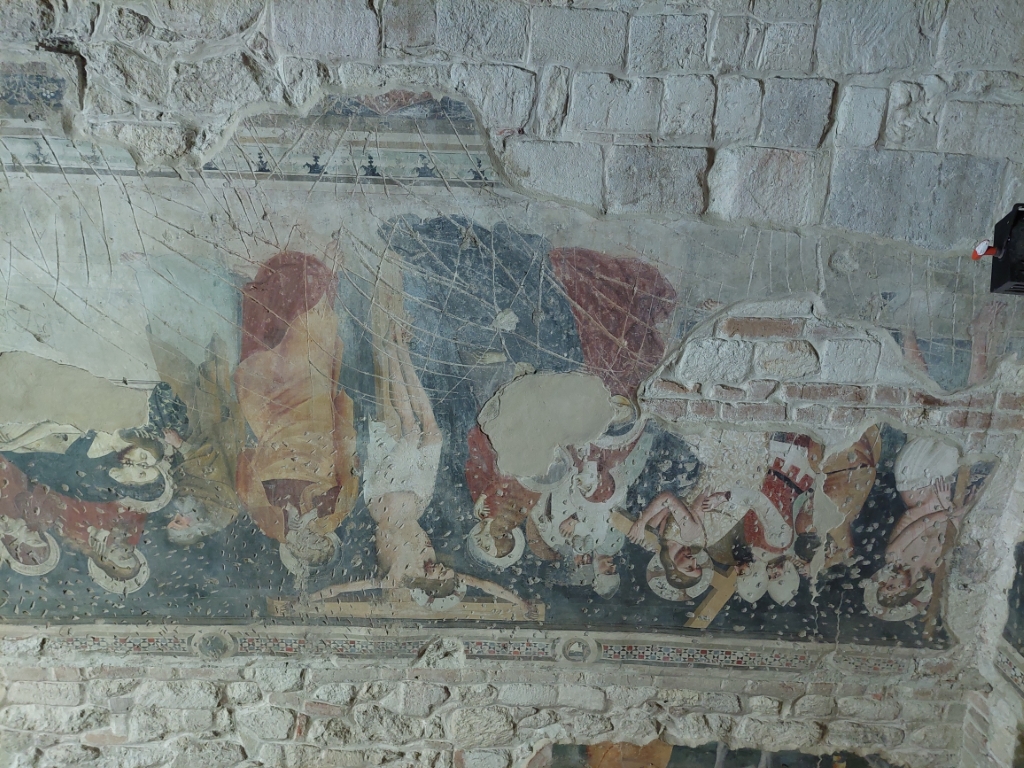 ciclo di affreschi del '300, il più vasto del Piemonte, attribuiti da alcuni a Giovanni da Milano o a pittore giottesco di area lombarda o al Maestro di Montiglio (1345-1360). |