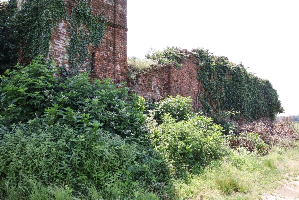 Campanile: in mattoni con bifore in parte tamponate, in parte crollate e cornici marcapiano. |