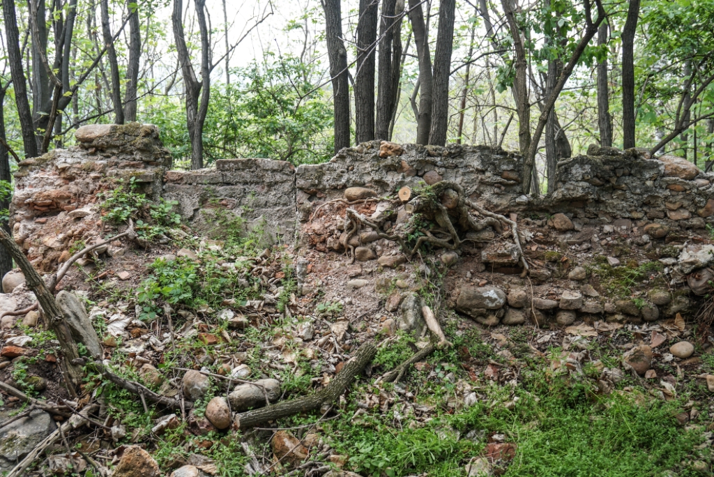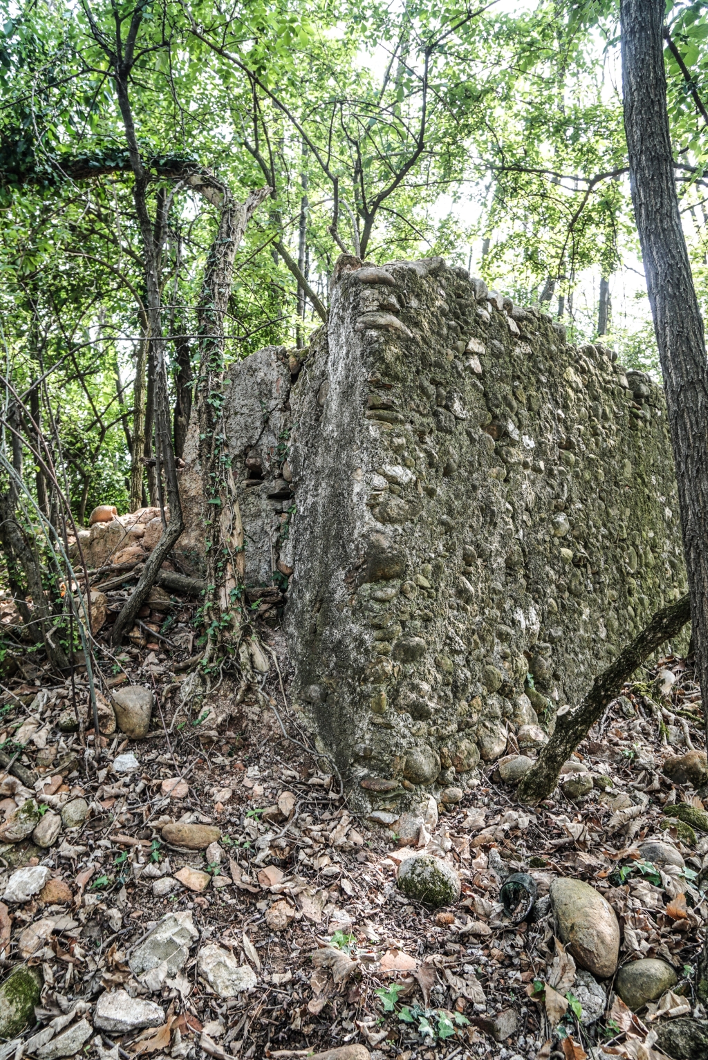 Esterno: resti di muratura tra la boscaglia. |