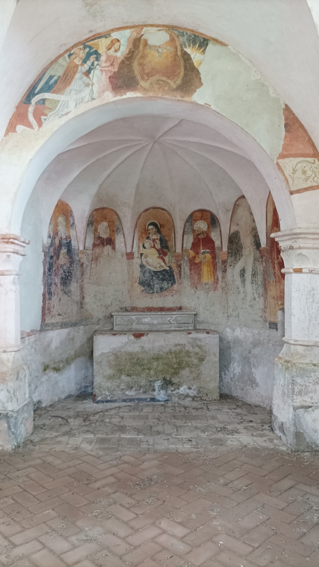Referenze fotografiche: scopri chi ha scattato le foto della chiesa • Vista - Giulio Pedrana - 2022 • Fregio con data - Giulio Pedrana - 2022 • Abside - Giulio Pedrana - 2022 • Affreschi - Giulio Pedrana - 2022 • Madonna col Bambino San Sebastiano e Santo - Giulio Pedrana - 2022 • Madonna col Bambino e Santi - Giulio Pedrana - 2022 • Madonna col Bambino e Santi - Giulio Pedrana - 2022 • Pannello illustrativo - Giulio Pedrana - 2022 |