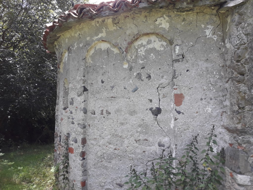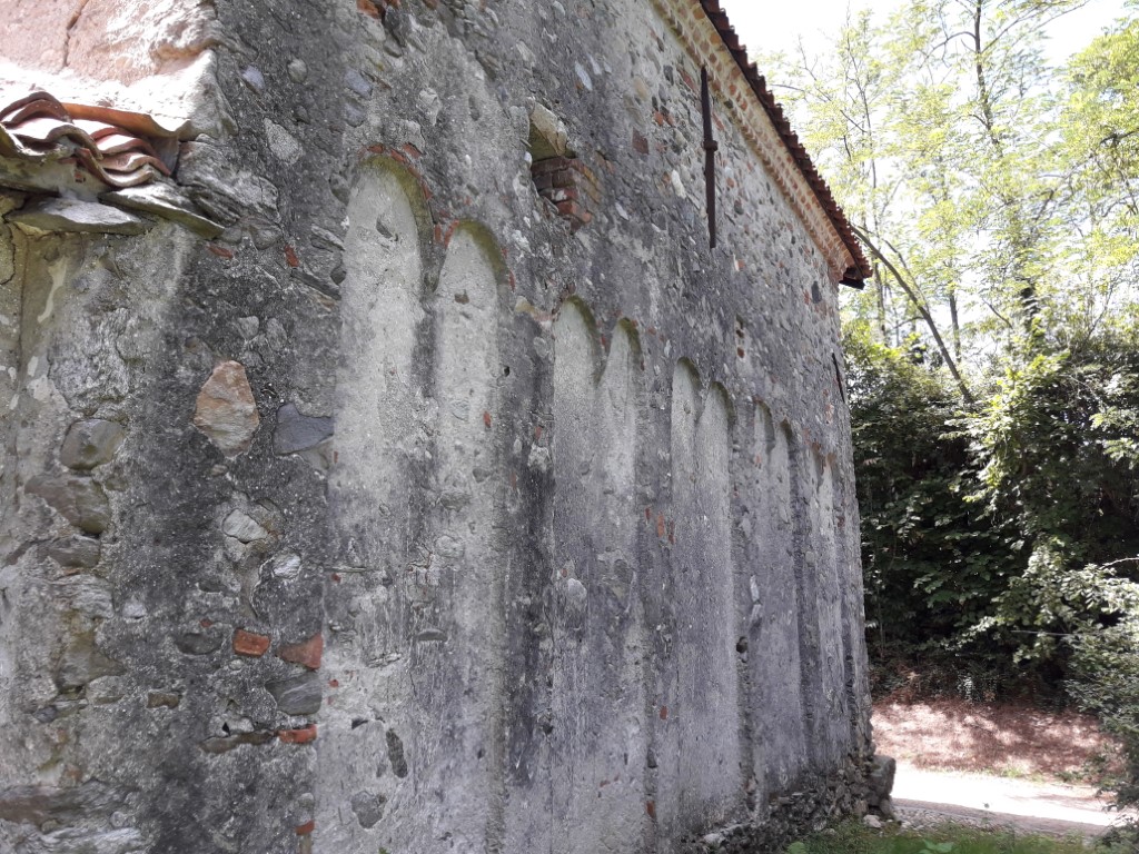 Esterno: fianchi e absidi segnati da archi doppi separati da lesene. |