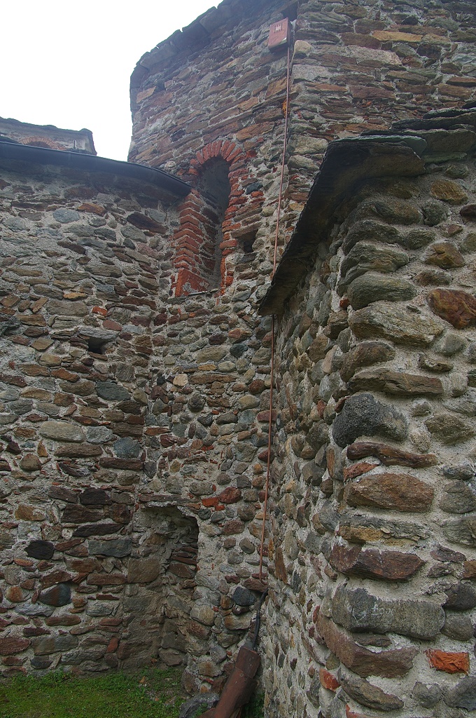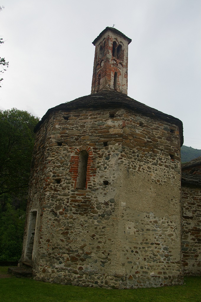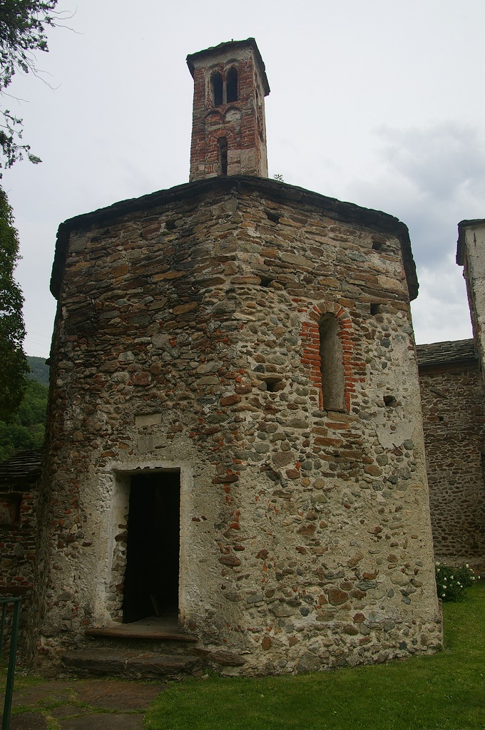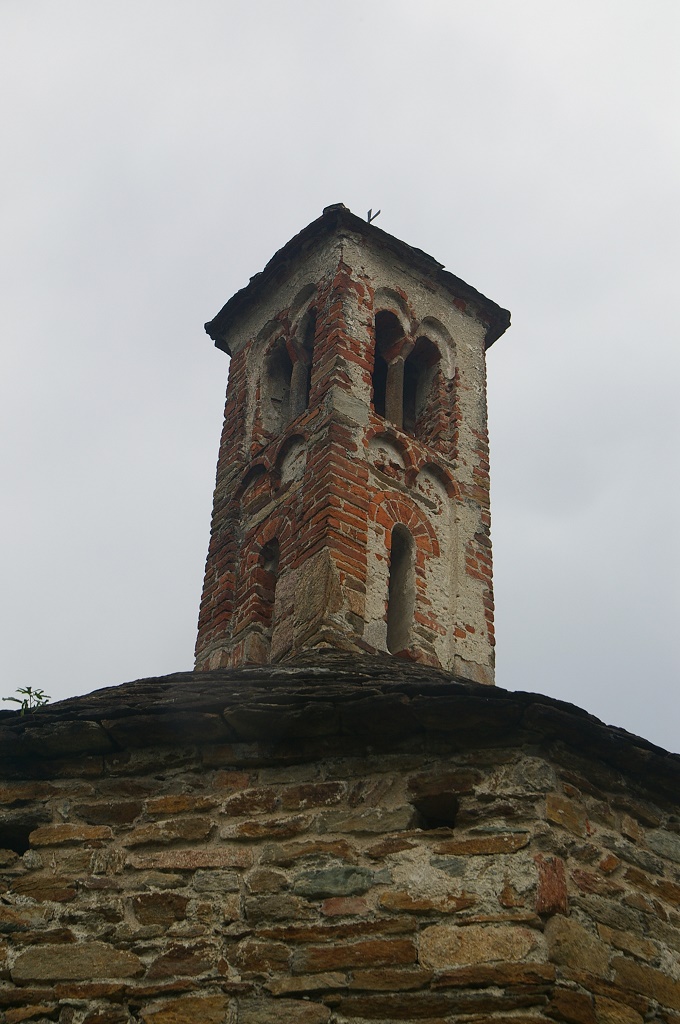 Campanile: lanterna a vela dell'XI secolo diviso in due piani ciascuno dei quali presenta sui due lati una coppia di archetti ciechi. Nel primo piano si aprono quattro feritoie, nel secondo quattro bifore. |
