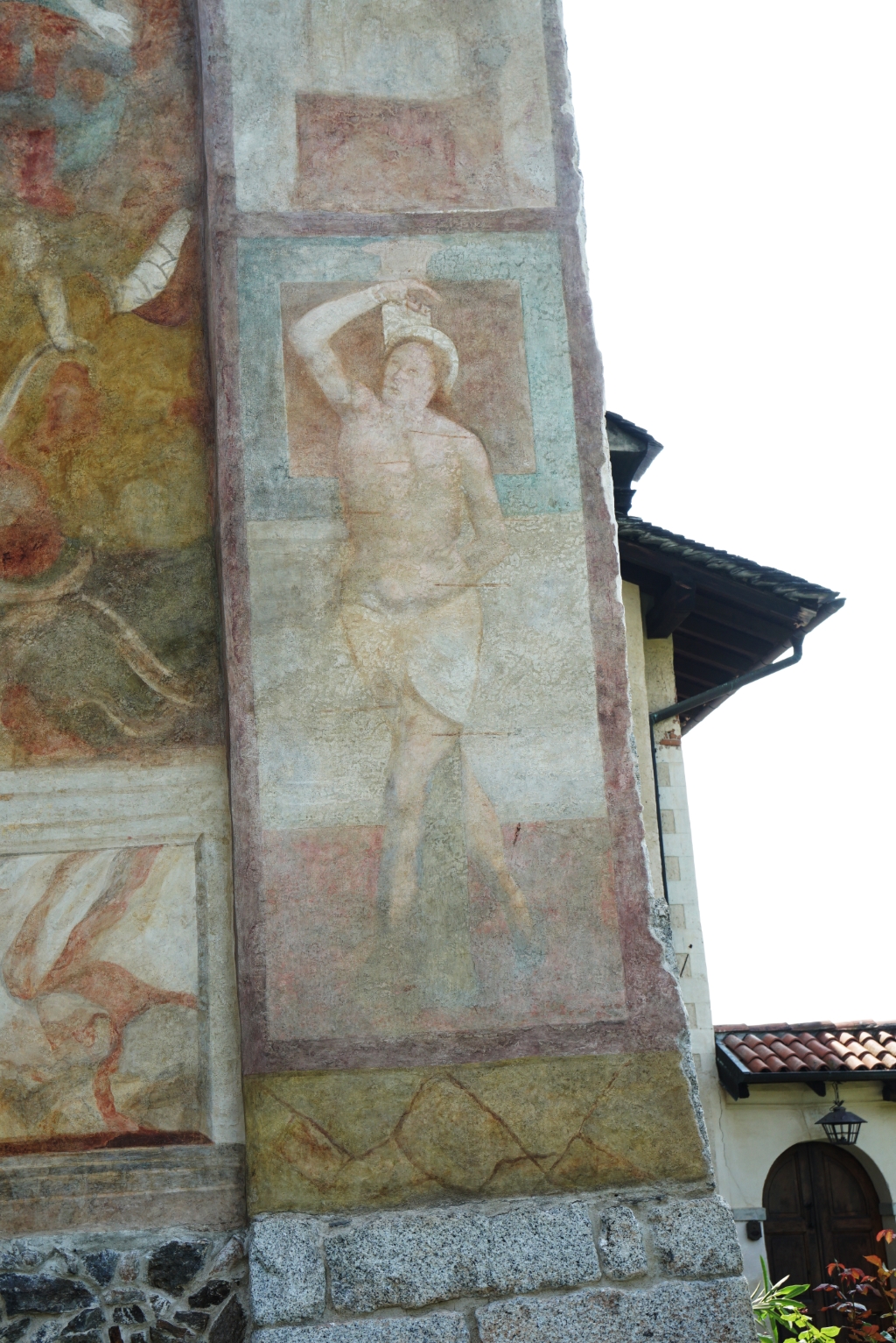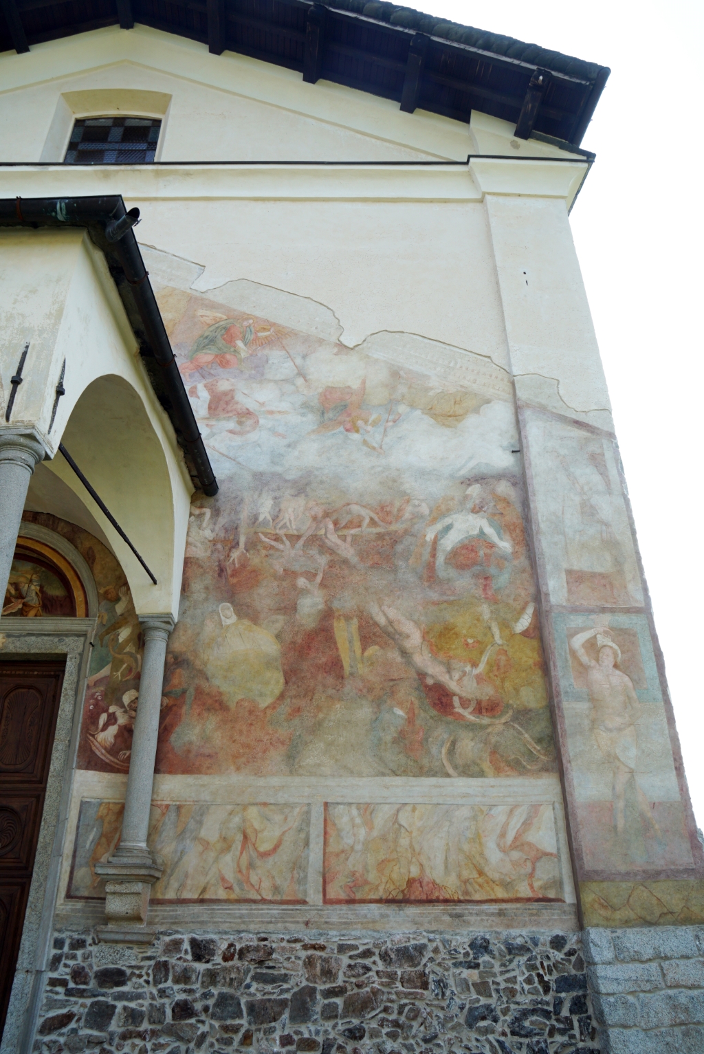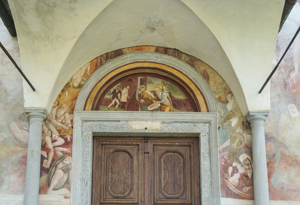 Esterno: in facciata affresco del Giudizio Universale di Giulio Cesare Luini (1512-dopo 1566) del 1566 e nella lunetta Nascita di Gesù dello stesso autore. |