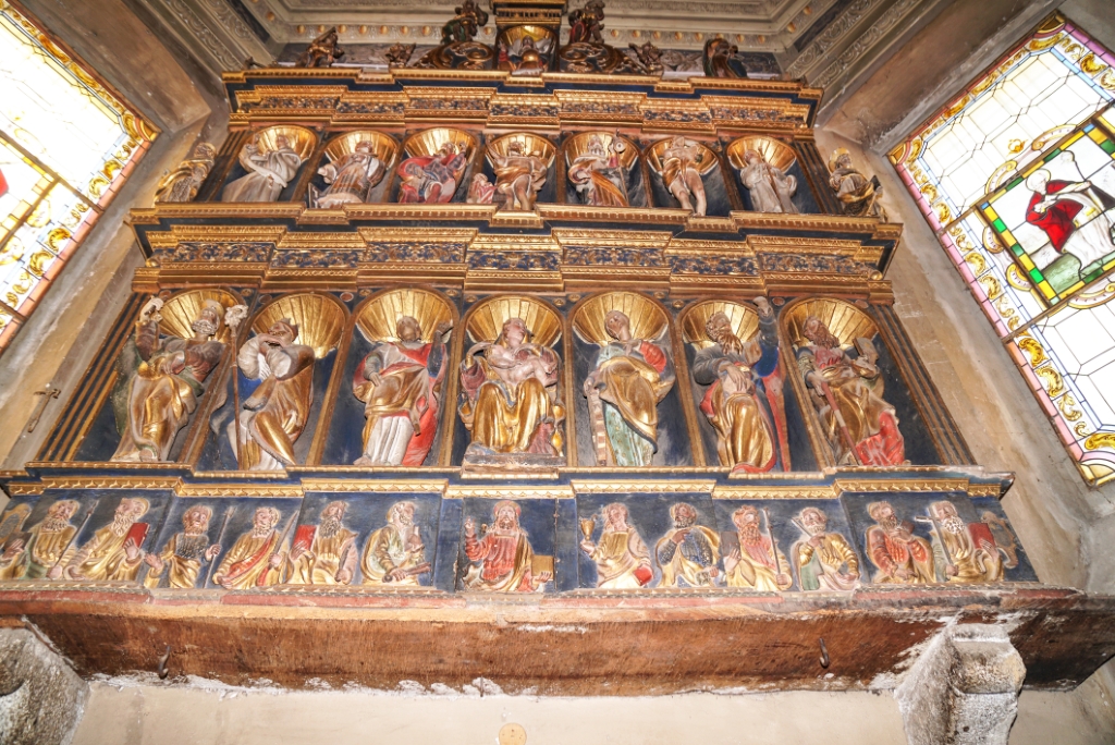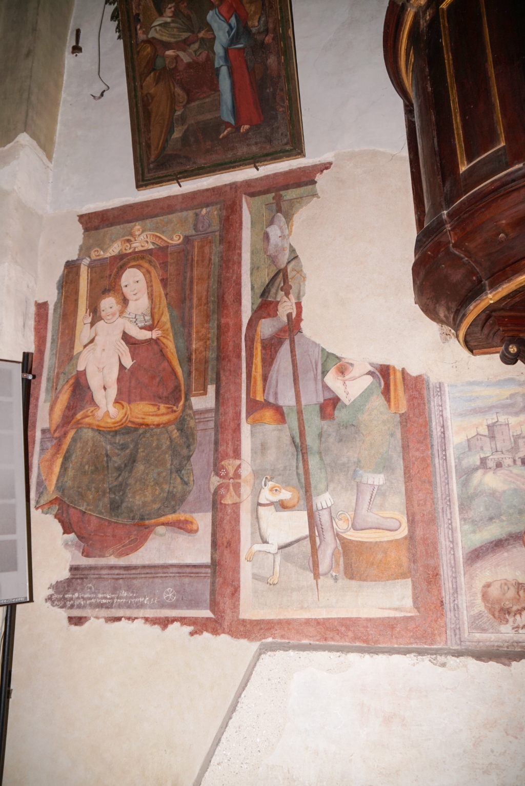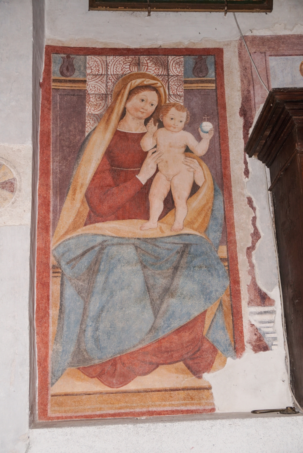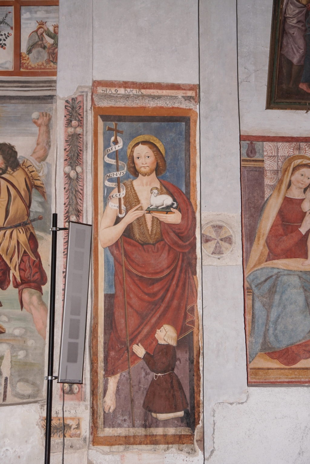 Esterno: in facciata affresco del Giudizio Universale di Giulio Cesare Luini (1512-dopo 1566) del 1566 e nella lunetta Nascita di Gesù dello stesso autore. |
