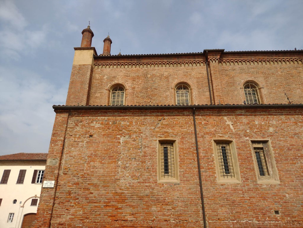 Interno: a tre navate divise da pilastri che reggono volte cordonate e archi, di cui quali centrali a sesto acuto. Nella prima cappella a destra, in basso, lastra tombale del condottiero Federico Dal Pozzo del 1380; nella seconda affresco del 1571 raffigurante la Madonna col Bambino e i Santi Giovannino, Onofrio e Giovanni Evangelista. Nel transetto sinistro Madonna, rilievo lombardo del '400 e sul pilastro tra la seconda e la prima cappella a sinistra affresco del '500 raffigurante l'Adorazione del Bambino. Nel chiostro, a sinistra della chiesa, del '400-'500 affresco del 1520 di Timoteo da Vercelli (attivo nella prima metà del '500) raffigurante la Crocifissione. Appena a sinistra dell'ingresso una scala conduce al sotterraneo ove sono conservati i resti delle due chiese oltre a resti romani. |
