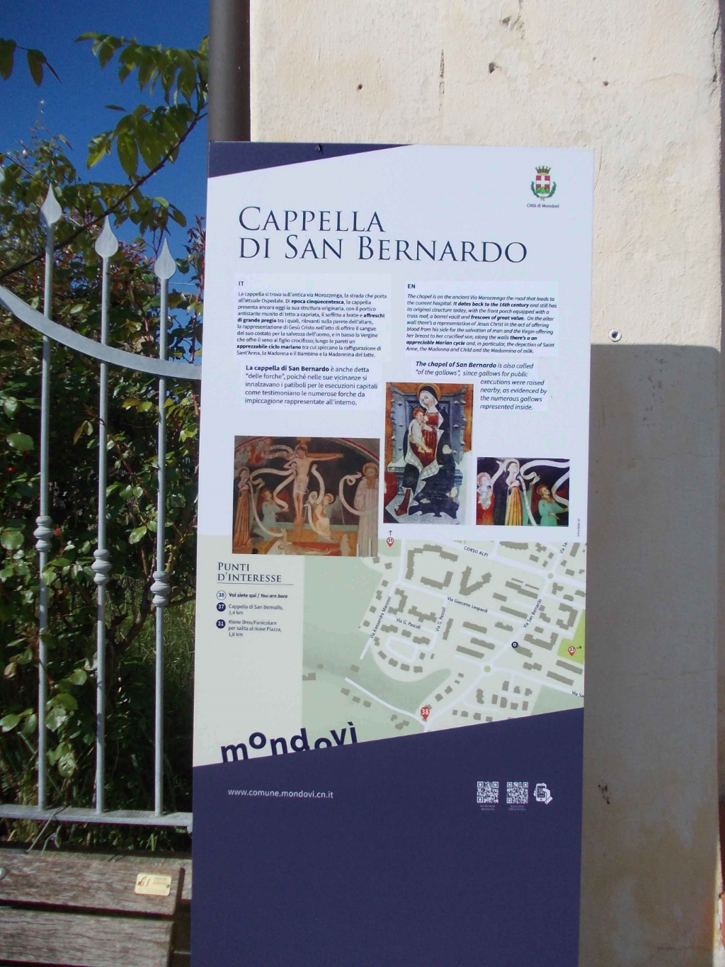 La Cappella si trova a Ferrone, Mondovì (CN), nota come San Bernardo di Clairvaux o delle Forche. Periodo prevalente: XV secolo. Livello di interesse: 2 (Merita una deviazione). Elementi presenti: pittura. Da vedere: interno.