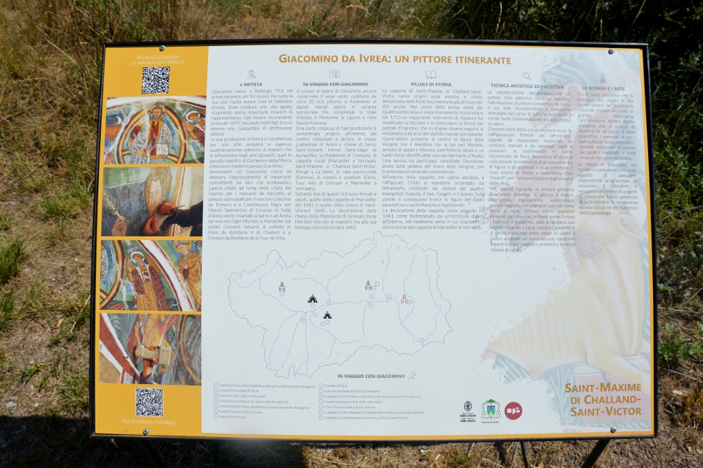 La Cappella si trova a Viran, Challand-Saint-Victor (AO), nota come San Massimo. Periodo prevalente: XV secolo. Livello di interesse: 2 (Merita una deviazione). Elementi presenti: pittura. Da vedere: esterno, interno.