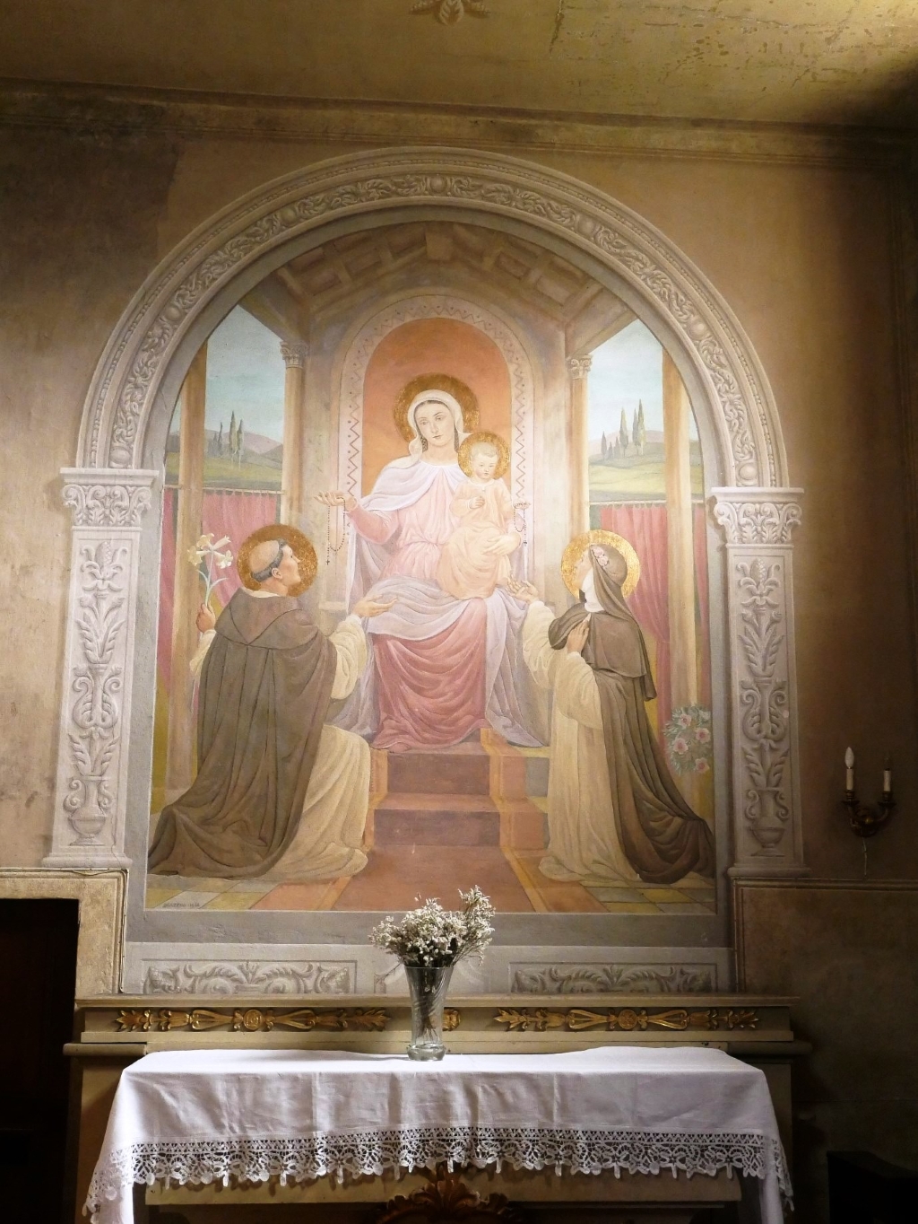 All’interno presenta una antica vasca battesimale in pietra. |