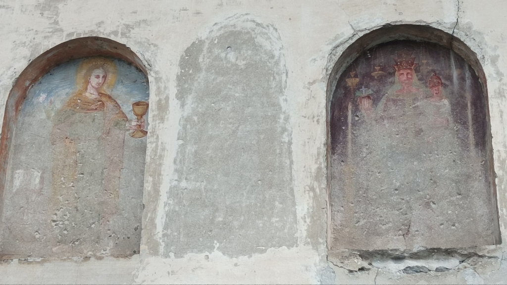 Interno: affreschi tra cui un aquila, simbolo di San Giovanni Evangelista e Vergine Maria. |