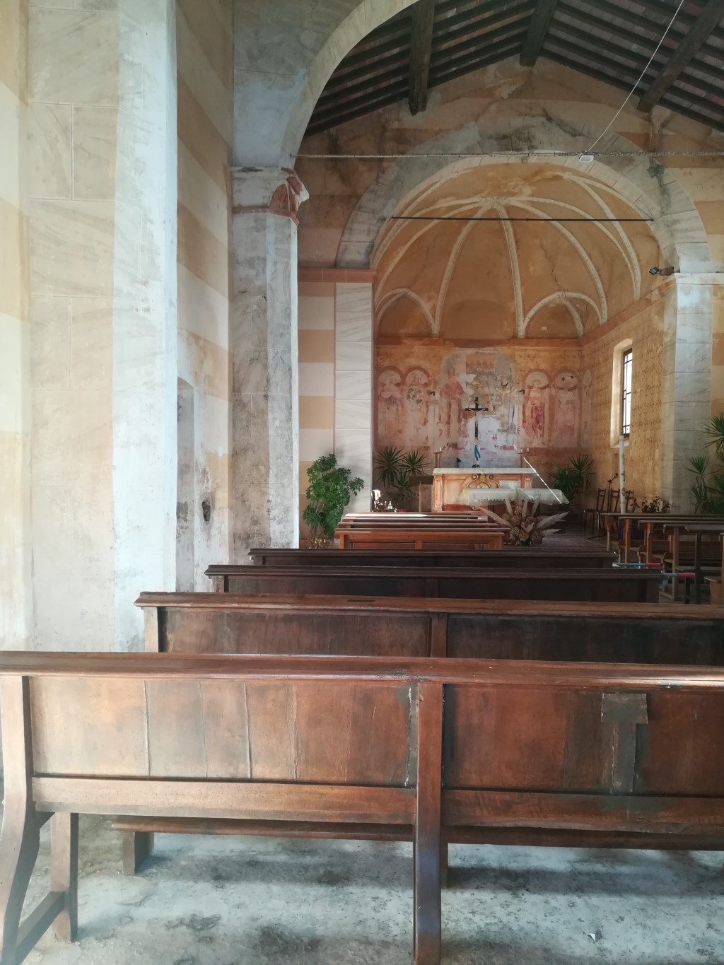 Interno: resti di muratura romanica e tracce di affreschi |