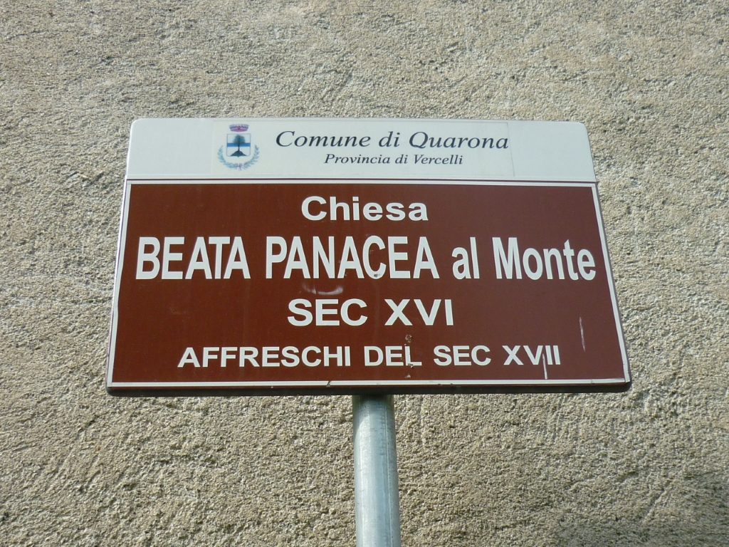 La Chiesa si trova a Quarona (VC), nota come Beata Panacea al Monte. Periodo prevalente: XV secolo. Livello di interesse: 0 (Segnalata). Elementi presenti: architettura. Da vedere: .