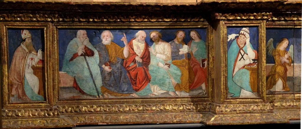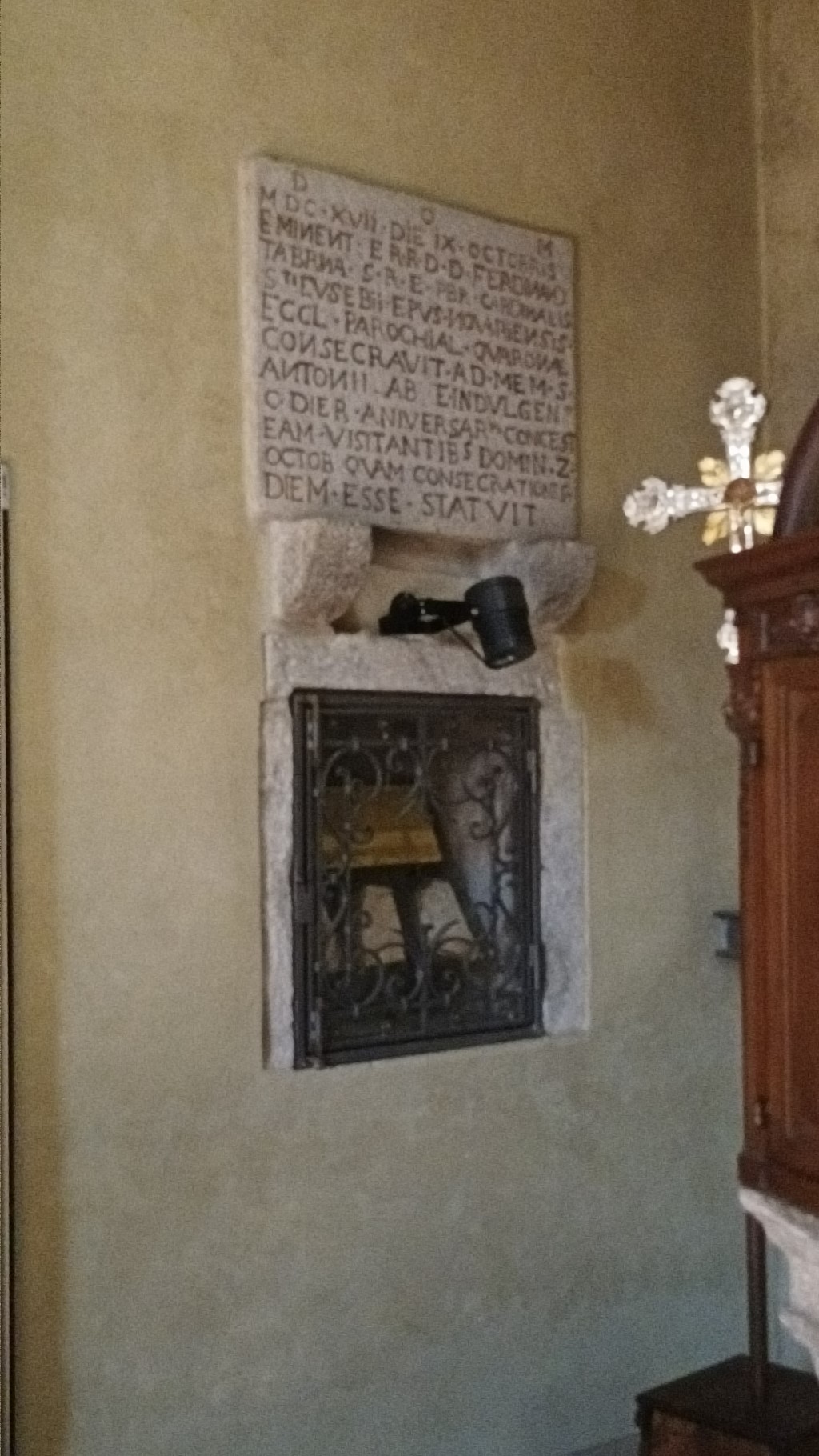 Interno: l'affresco della Beata Panacea del 1494 e polittico Duelli del 1467. Madonna col Bambino di Gaudenzio Ferrari e gruppo ligneo del compianto di fine 400. |
