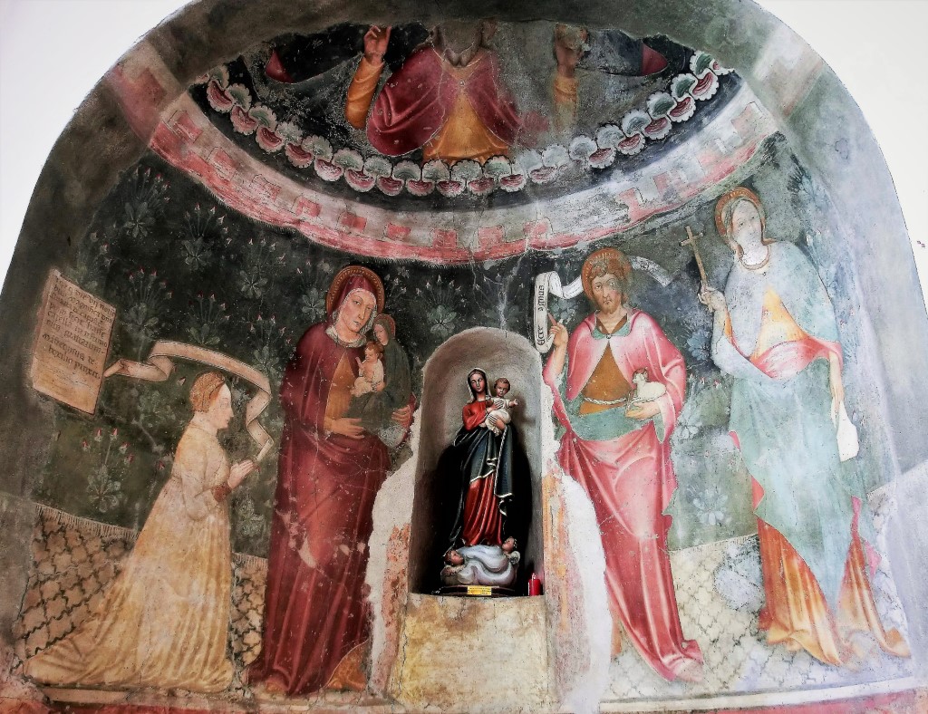 Interno: nell'abside affreschi datati 1474 firmati da Manfredino Bosilio (morto nel 1496). |