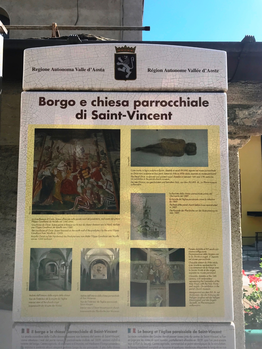 La Chiesa si trova a Saint-Vincent (AO), nota come San Vincenzo di Saragozza. Periodo prevalente: XV secolo. Livello di interesse: 2 (Merita una deviazione). Elementi presenti: pittura, cripta. Da vedere: esterno, interno, campanile.