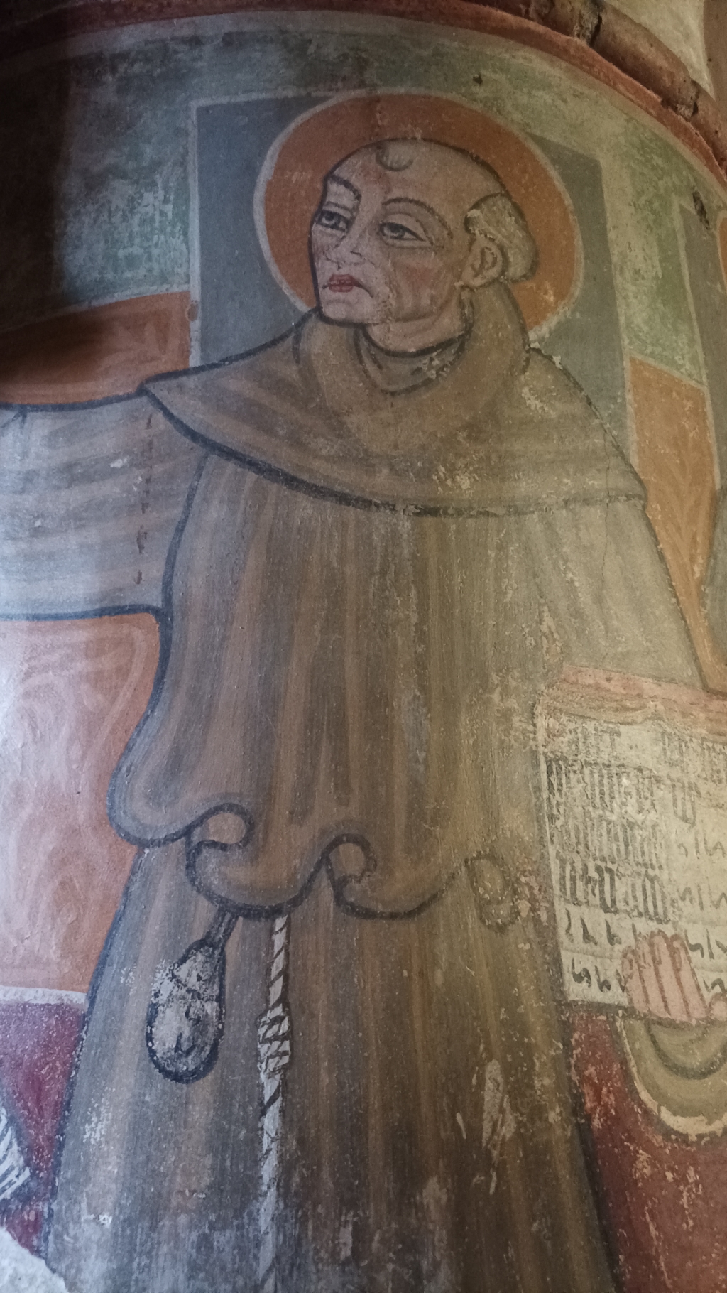 Interno: affresco di San Bernardino da Siena, dipinto nel Quattrocento, e pala d'altare raffigurante la Deposizione di Cristo, eseguita forse da Giuseppe Giovenone il Giovane nel XVI secolo |