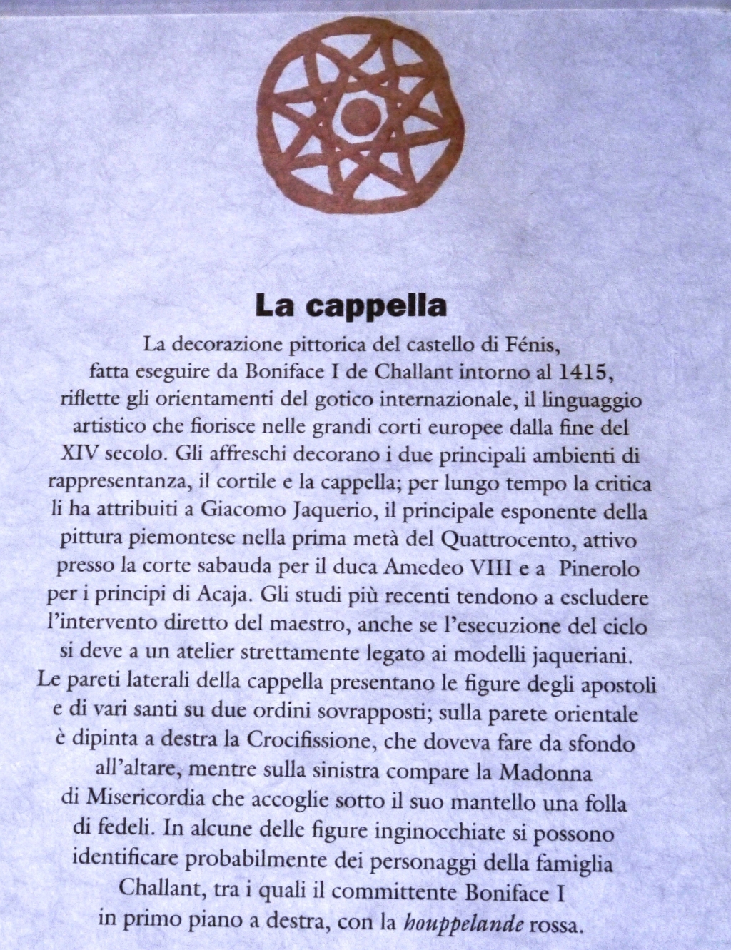 ♦ https://www.jaquerio.afom.it/fenis-ao-castello-scheda-2-cappella-affreschi-della-scuola-di-giacomo-jaquerio/ - Verificato il 27/09/2024 ♦ https://valledaostaheritage.com/focus/la-cappella/ - Verificato il 27/09/2024 ♦ https://www.jaquerio.afom.it/fenis-ao-castello-scheda-2-cappella-affreschi-della-scuola-di-giacomo-jaquerio/ - Verificato il 26/05/2025 ♦ https://www.jaquerio.afom.it/fenis-ao-castello-scheda-1-cortile-affreschi-della-scuola-di-giacomo-jaquerio/ - Verificato il 26/05/2025 |