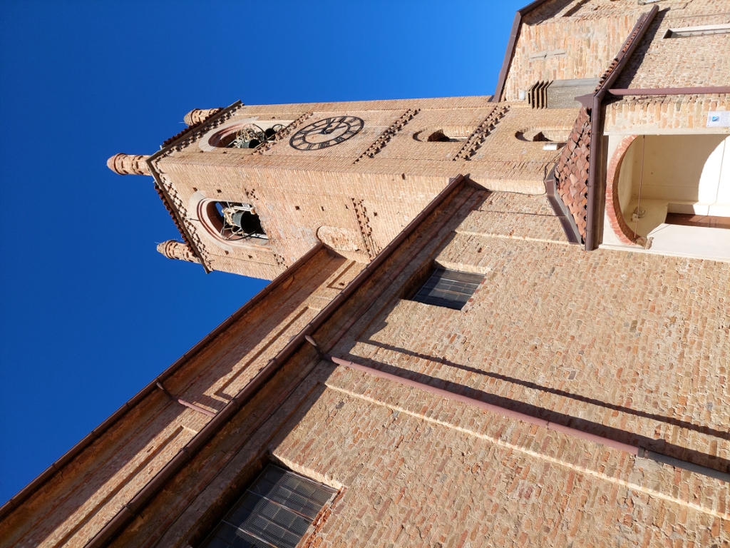 Campanile: del '300, in mattoni con fregi a dente di sega. |