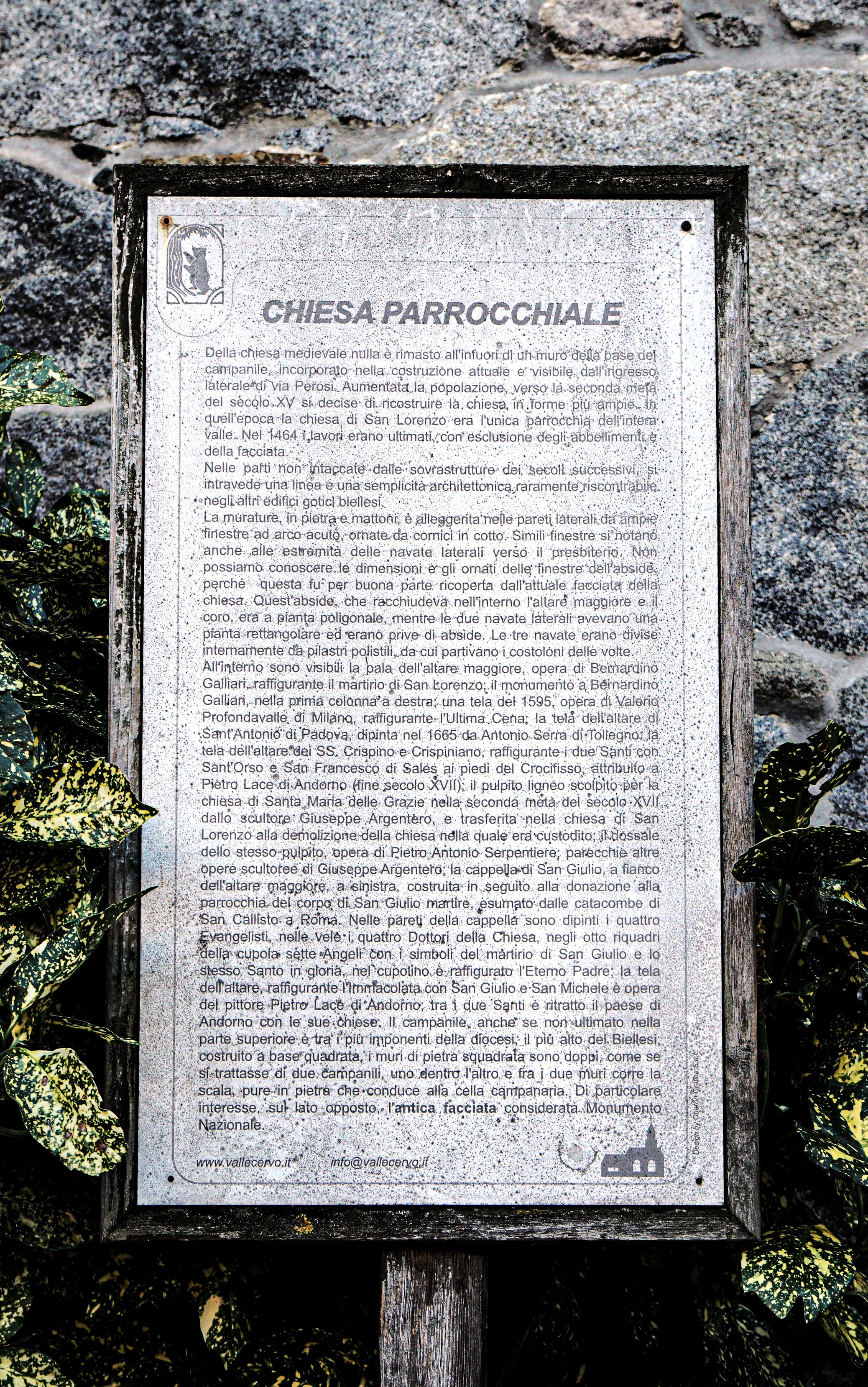 La Parrocchiale si trova a Andorno Micca (BI), nota come San Lorenzo. Periodo prevalente: XV secolo. Livello di interesse: 1 (Interessante). Elementi presenti: architettura, scultura, campanile. Da vedere: esterno, interno, campanile.
