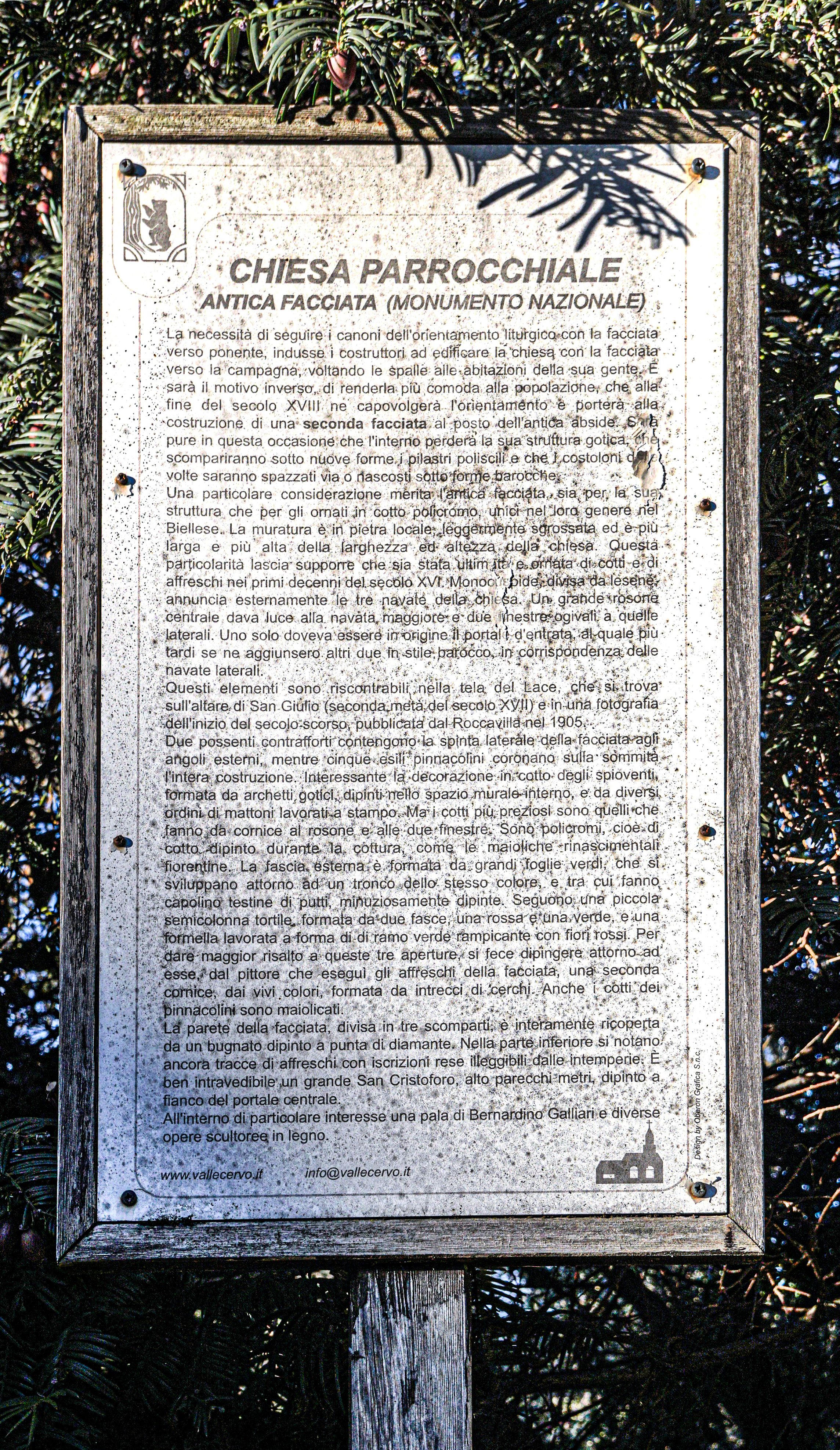 Notizie generali: la chiesa risale al X secolo, ma si presenta nella veste datagli nel XV. L'abside attuale era la facciata fino al '700.Su uno degli archetti dell'abside si legge la data del rifacimento gotico: 1464. |