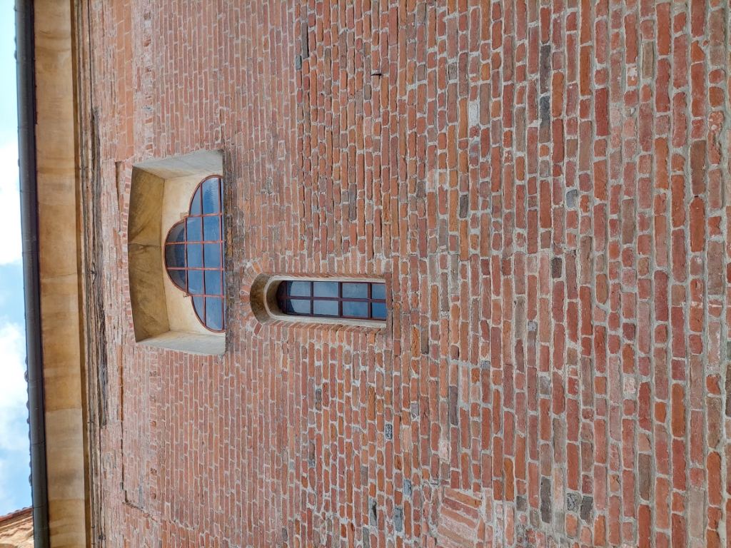 Esterno: in stile gotico lombardo con facciata ampia scandita da sottili lesene. |