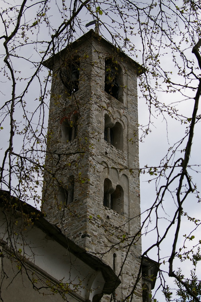 Campanile: romanico a monofore e bifore, dell'XI secolo. |