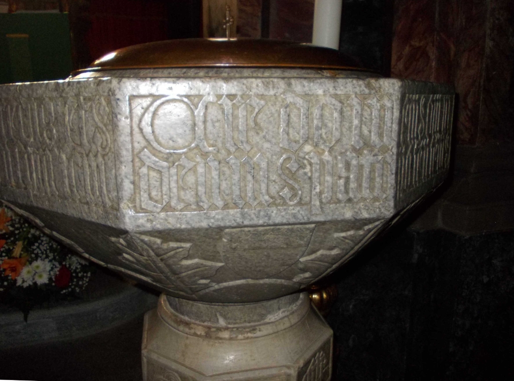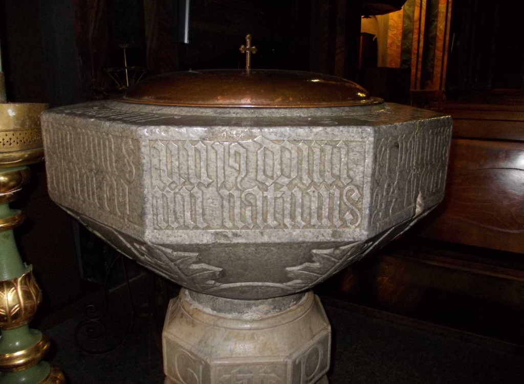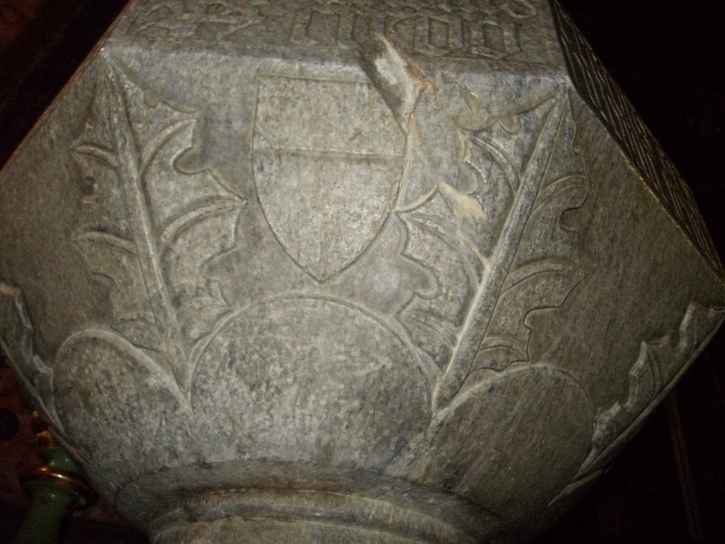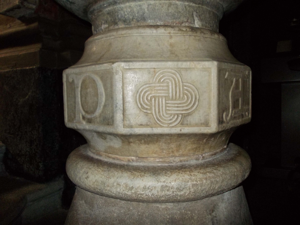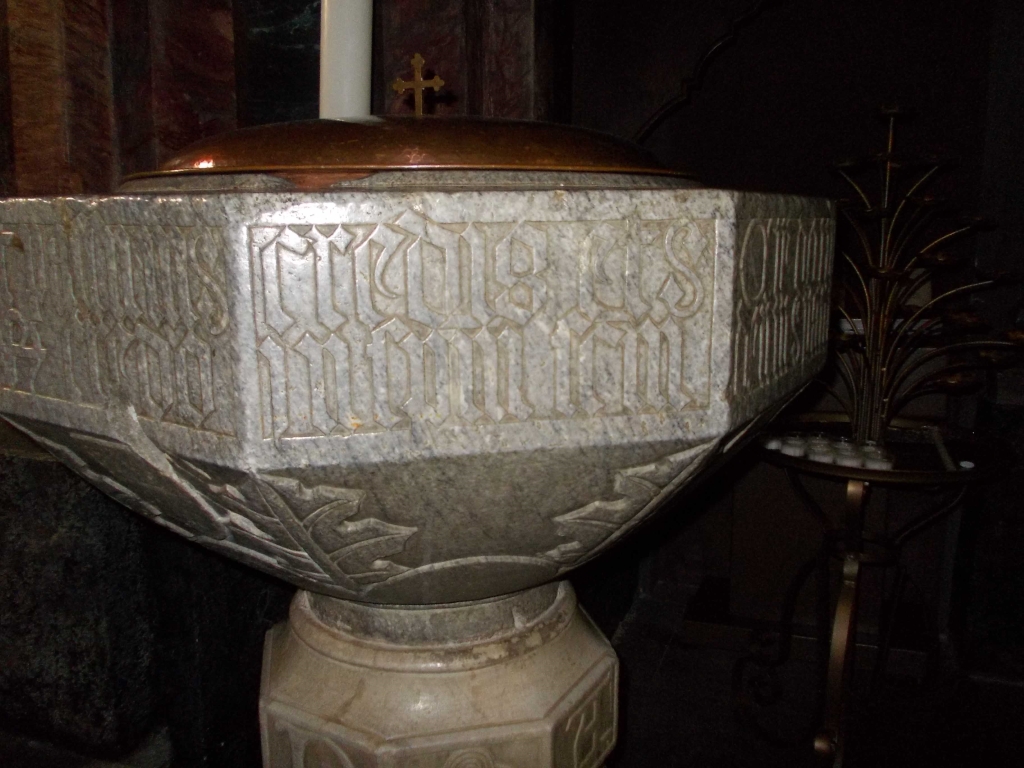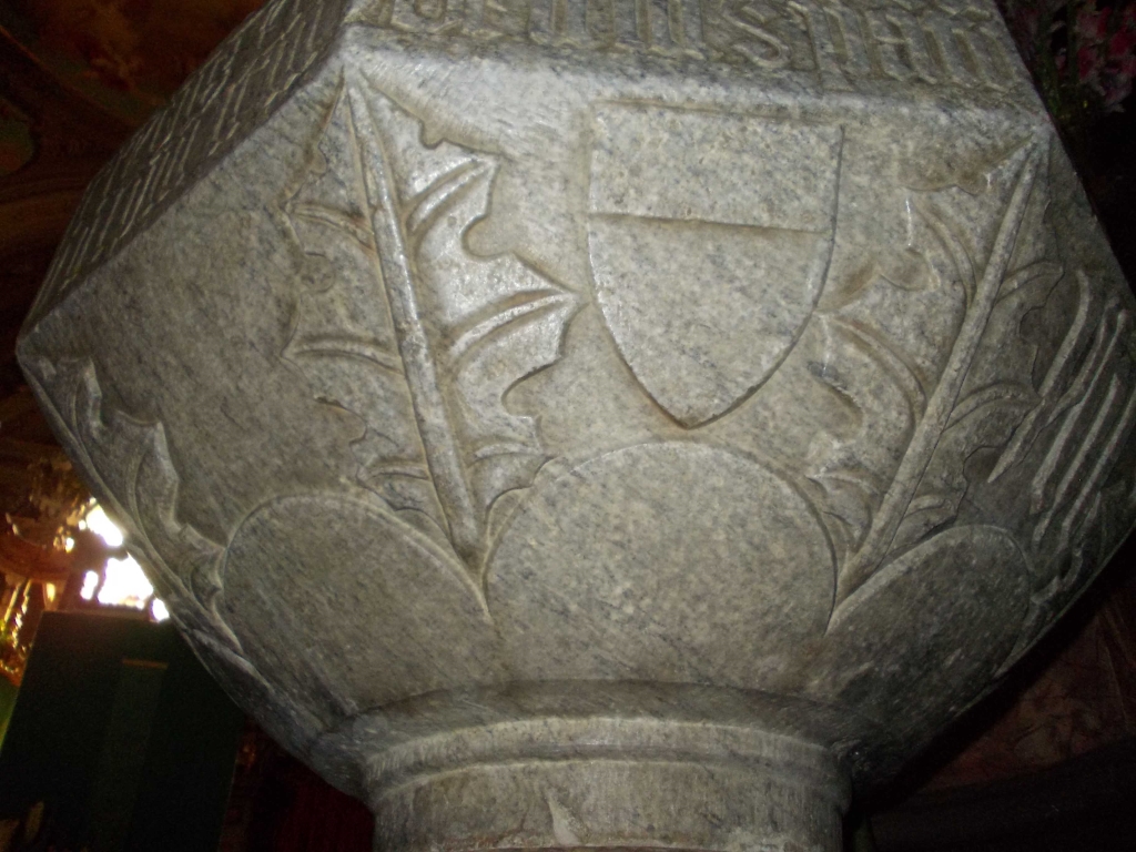 fonte battesimale del 1450 e alla base del campanile ciclo di affreschi della metà del '400 raffiguranti l'Adorazione dei Magi, la strage degli innocenti, il Seminatore di Bethleem, la Presentazione di Gesù al tempio e la Visitazione e, nella porzione inferiore, entro tondi, Sibille. |