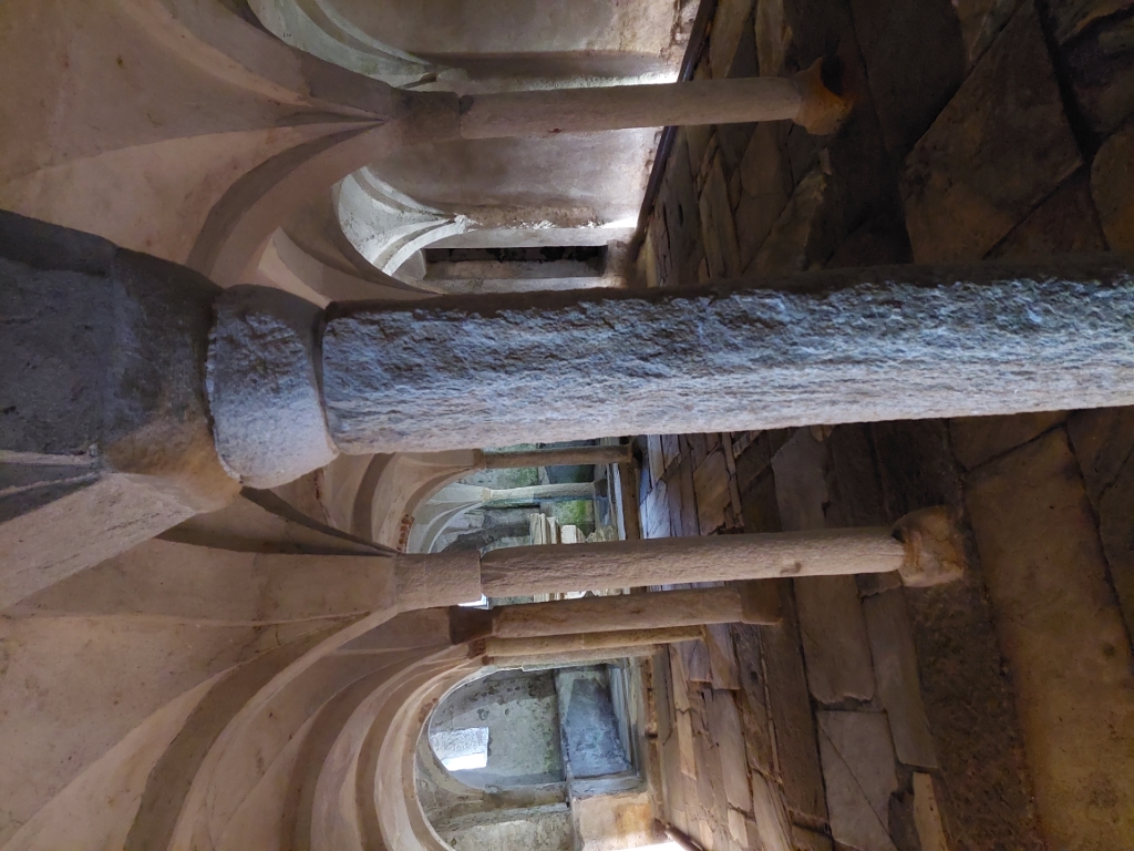 Esterno: due massicci pilastri romanici davanti alla facciata. |