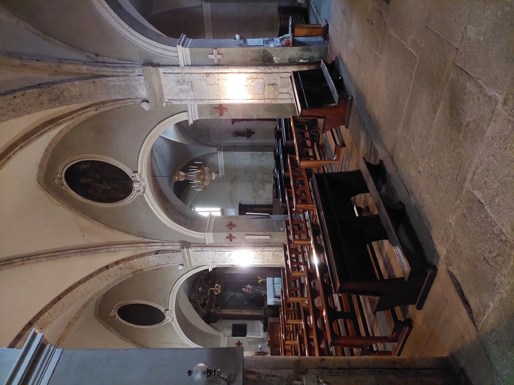 Interno: resti della chiesa primitiva rappresentati da due capitelli a mezzo metro di altezza addossati alle prime due colonne a sinistra della navata centrale. |