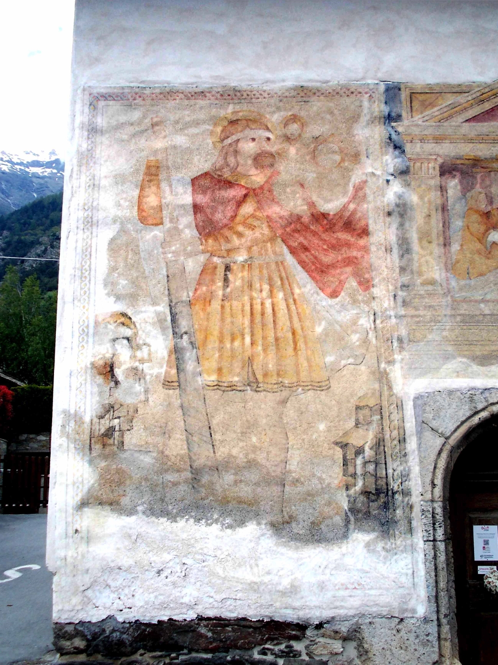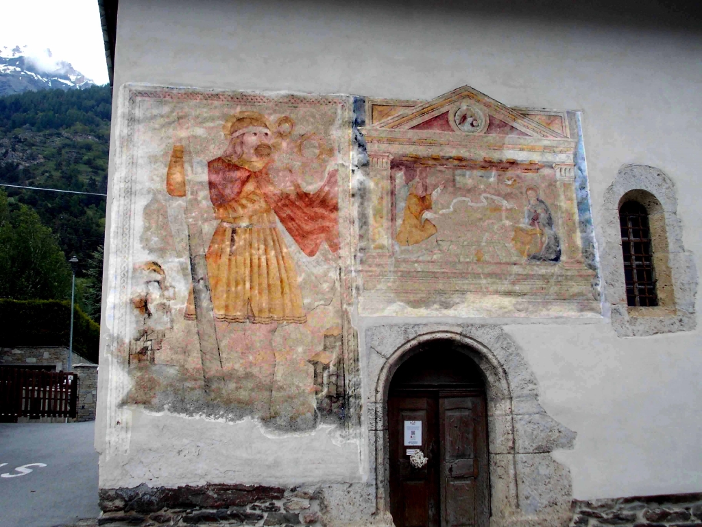 Esterno: sulla facciata San Cristoforo con il santo che attraversa le acque portando Gesù sulle spalle e Annunciazione datata 1533. |