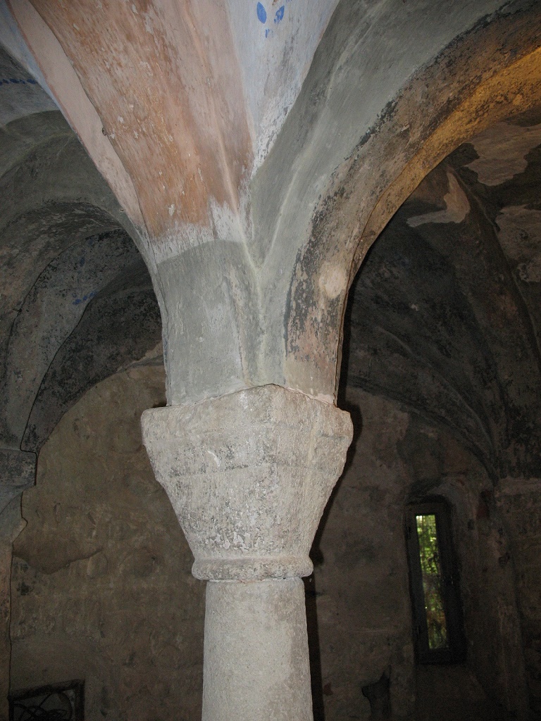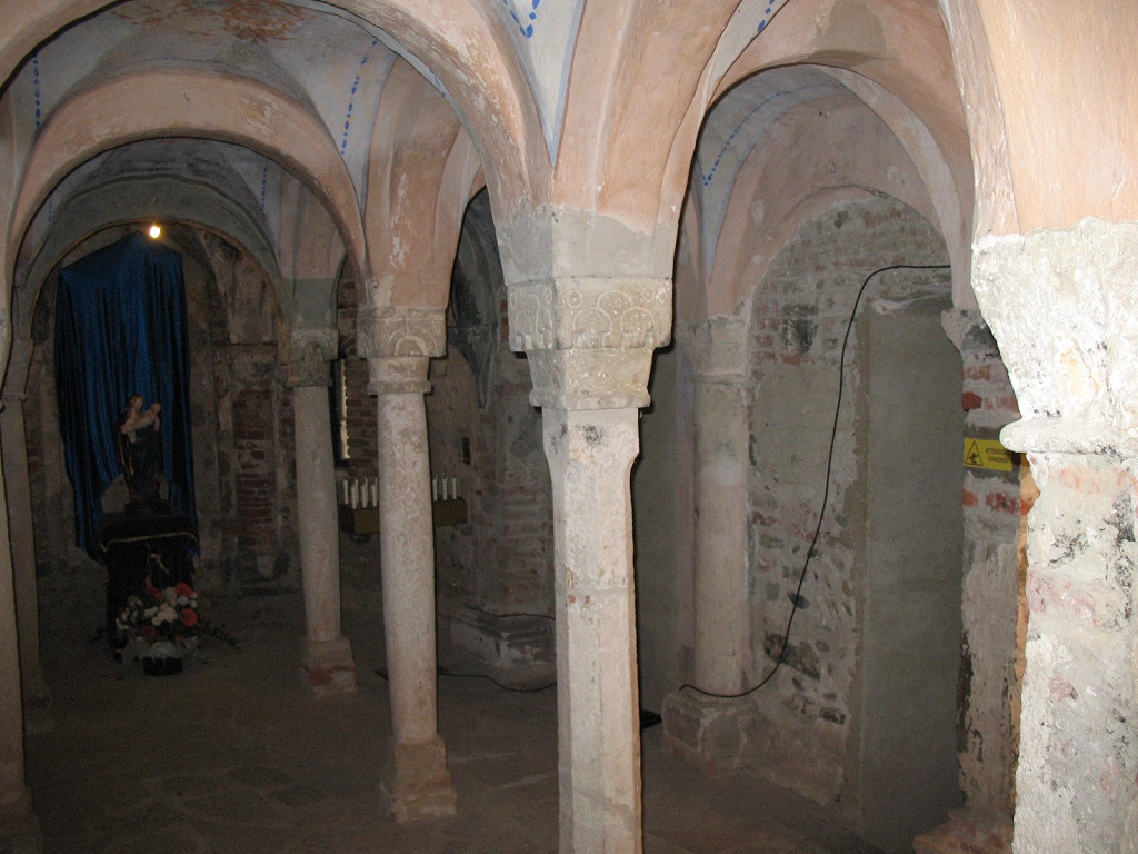 Cripta: romanica, sostenuta da colonne e capitelli costituiti da materiale di reimpiego risalente all'alto medioevo. |