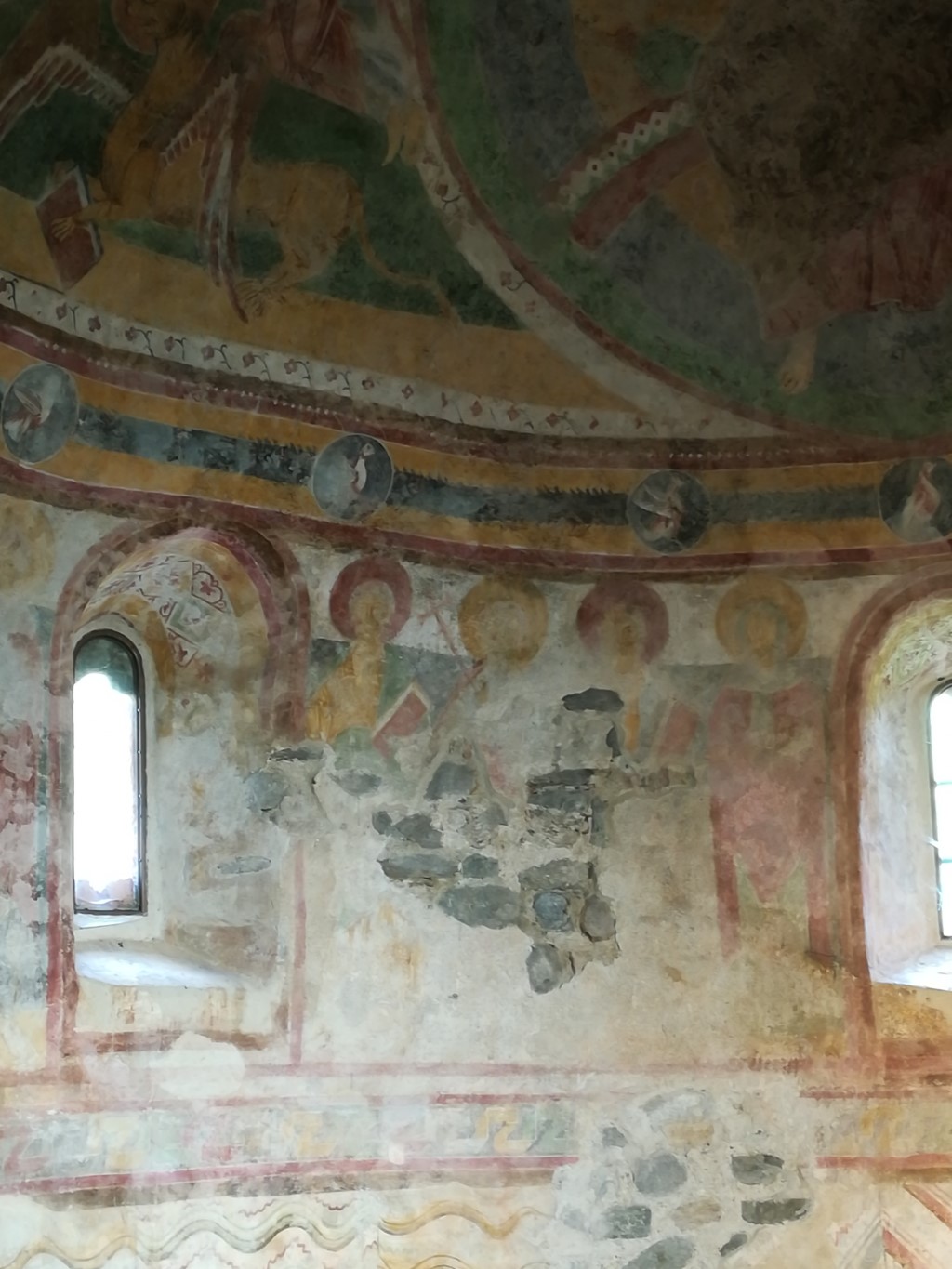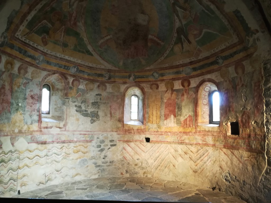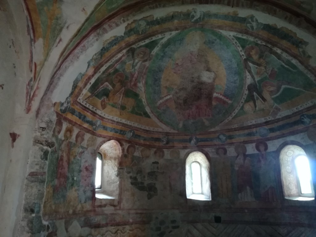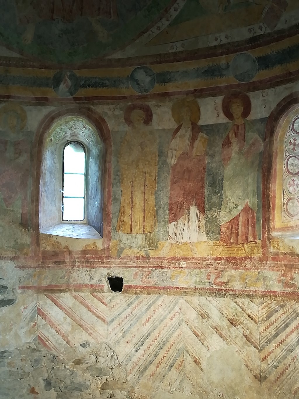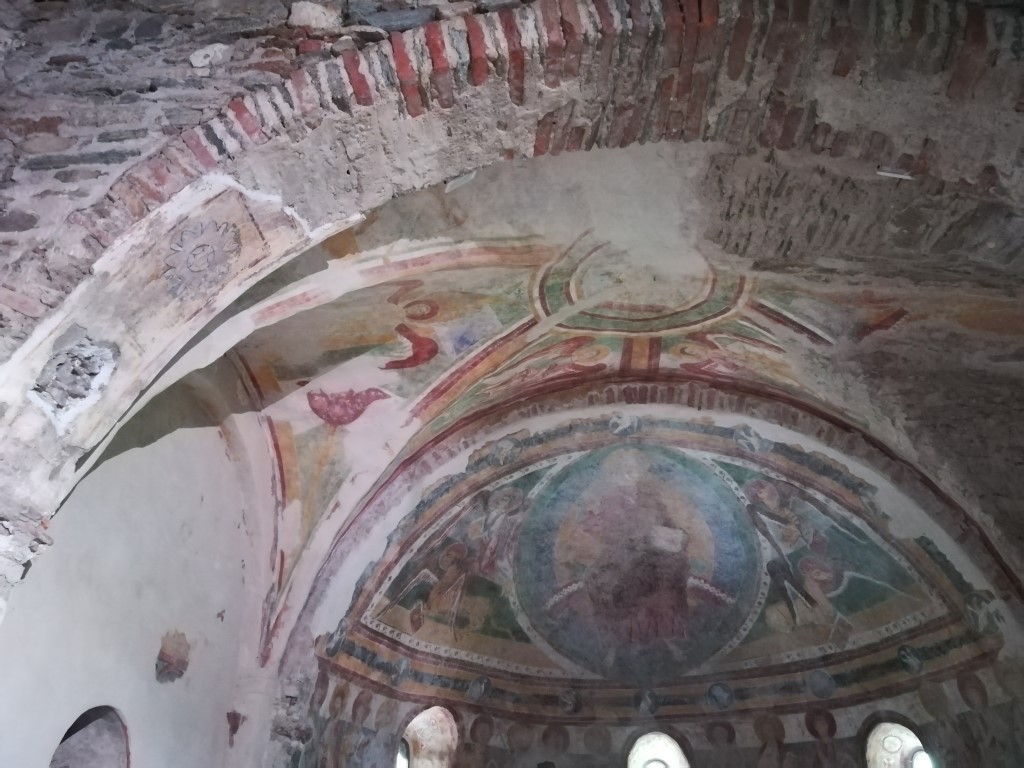 nell'abside affreschi, recuperati nel 1977, del Cristo Pantocratore circondato dai simboli degli Evangelisti al di sopra di 14 figure di Santi, databile all'inizio del 1000. |