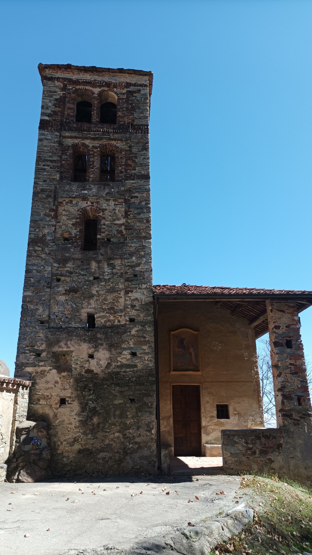 Campanile: romanico a monofore e bifore. |