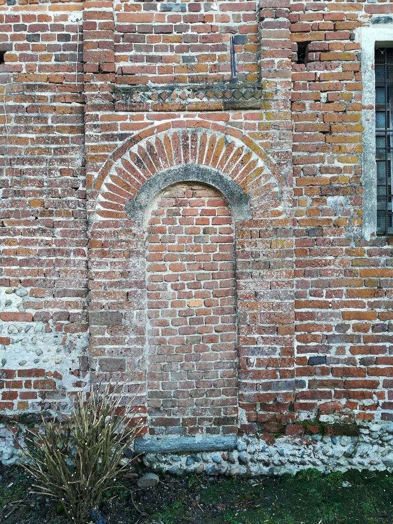 Esterno: abside centrale con una serie di fornici disposte sotto la cornice. |