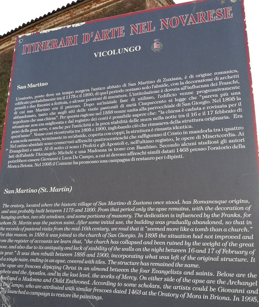 L'Oratorio si trova a Vicolungo (NO), noto come San Martino. Periodo prevalente: XV secolo. Livello di interesse: 1 (Interessante). Elementi presenti: architettura, pittura. Da vedere: esterno, interno.
