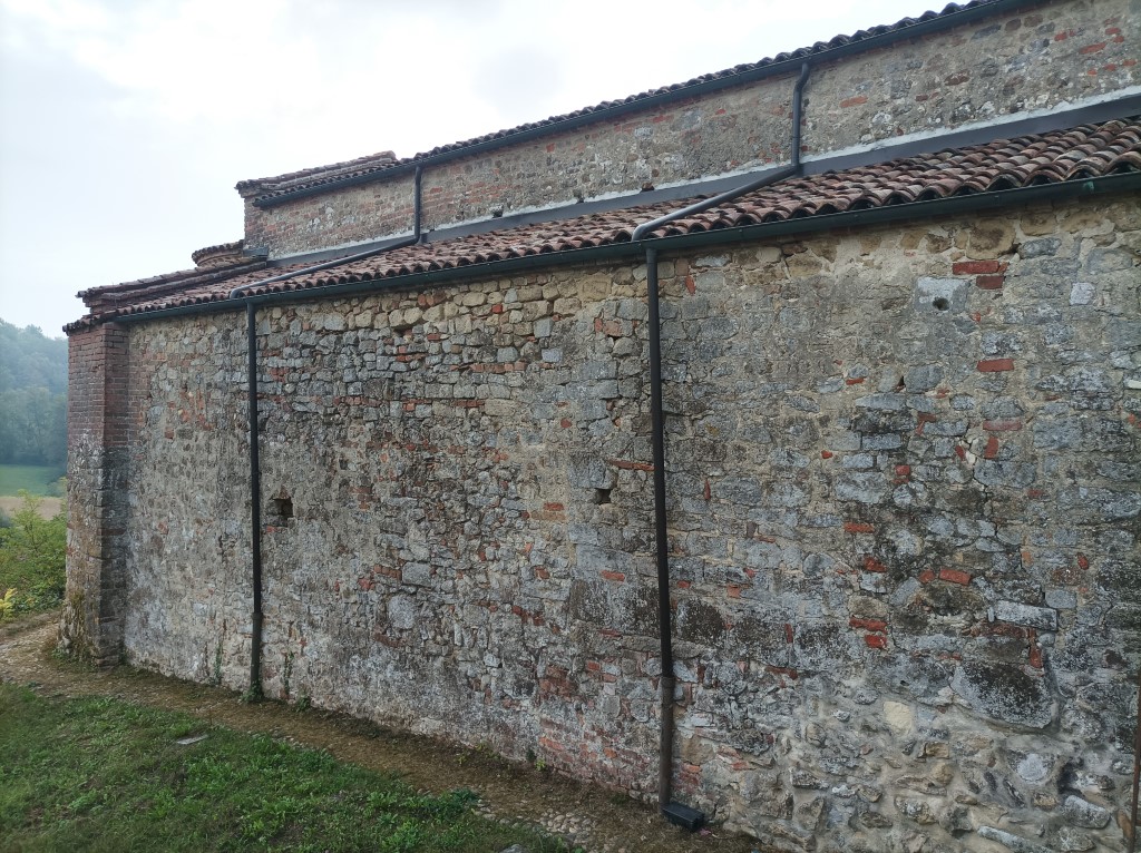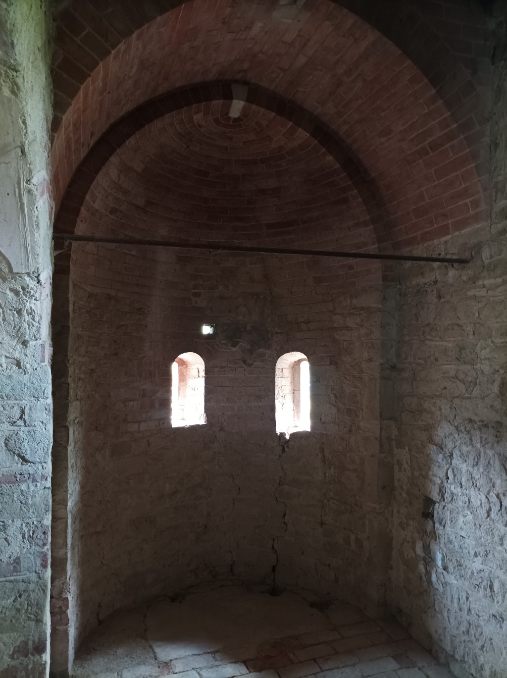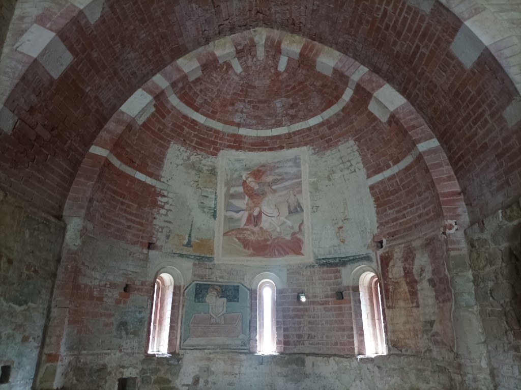 Esterno: tre absidi coronate da archetti pensili, molto restaurate e in parte rifatte. |