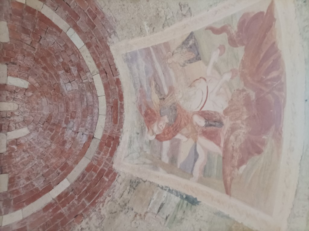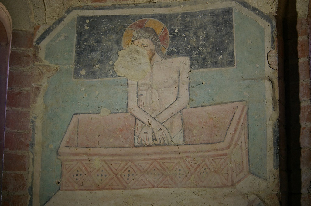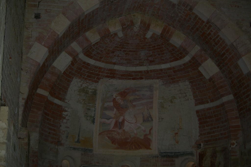Interno: antichi affreschi databili inizio '400. Nell'abside, in basso a sinistra, Cristo di Pietà che emerge dal sepolcro, a destra Sant'Agata Martire e Santa Chiara d'Assisi. Nell'abside nord, San Michele Arcangelo e, nell'abside sud, San Giovanni Battista che indica l'Agnello pasquale. |