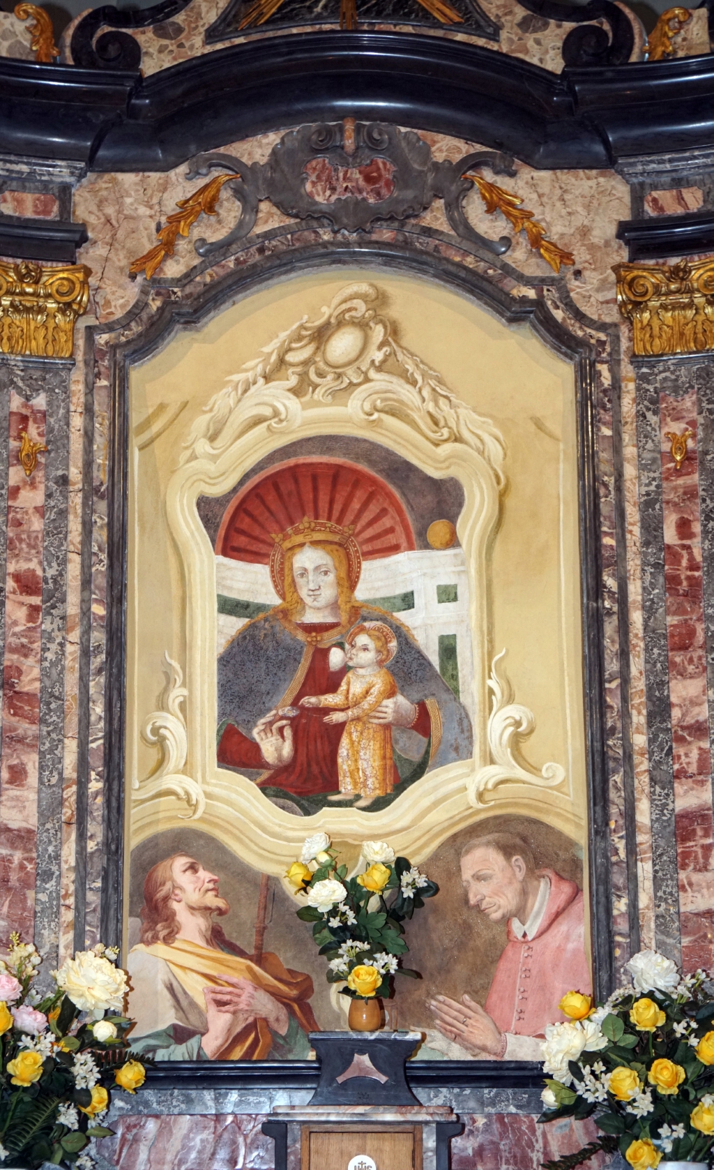 Interno: Madonna col Bambino affrescata nel '300. |