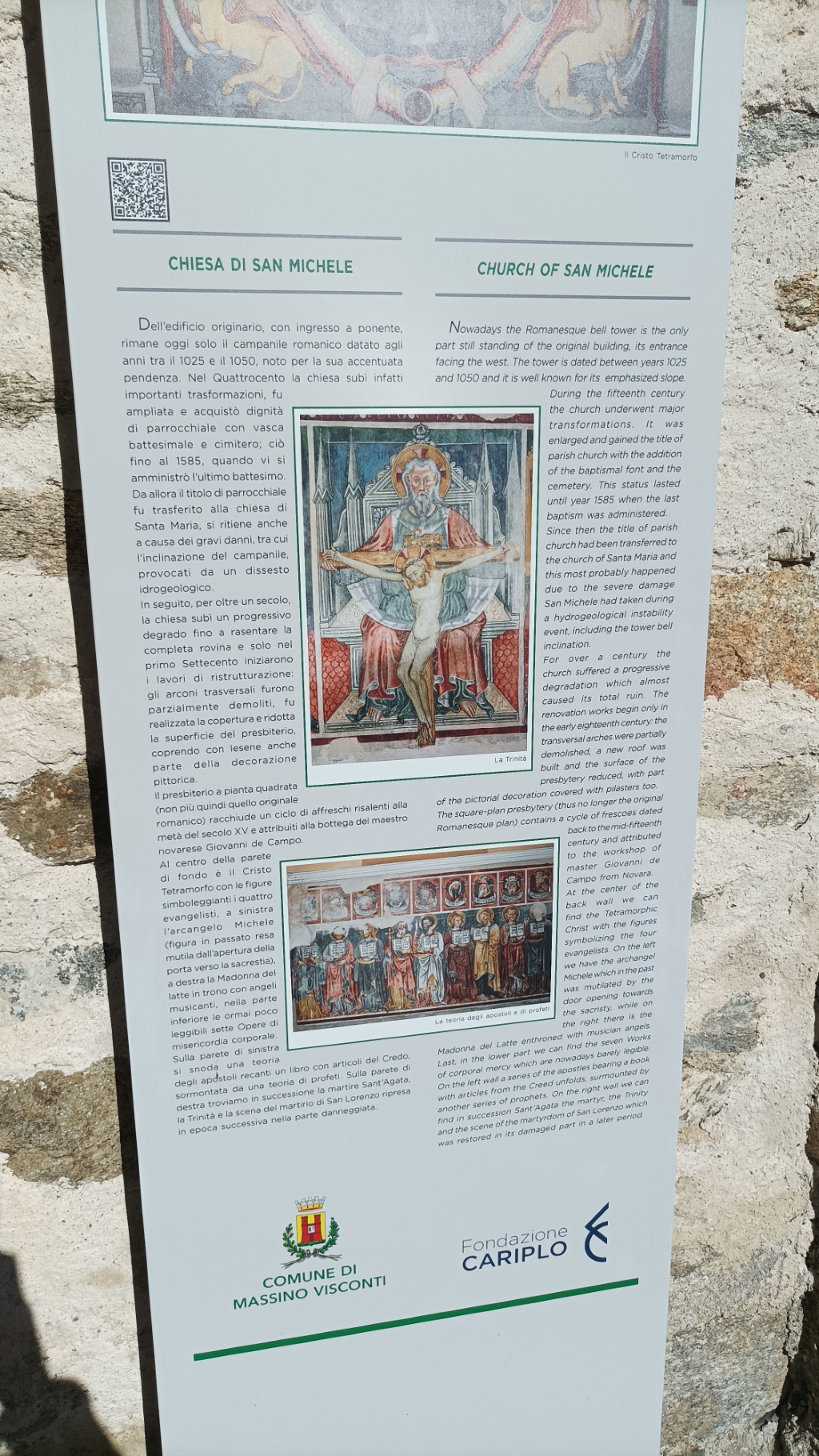 La Chiesa si trova a Massino Visconti (NO), nota come San Michele. Periodo prevalente: XV secolo. Livello di interesse: 2 (Merita una deviazione). Elementi presenti: pittura, campanile. Da vedere: interno, campanile.
