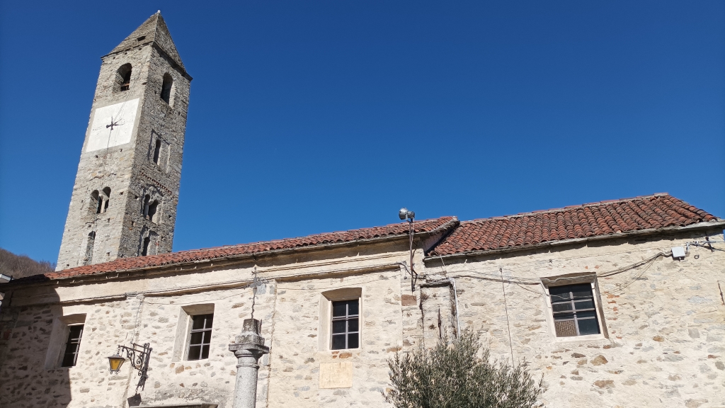Campanile: romanico, pendente forse a causa di una frana del 1585. |