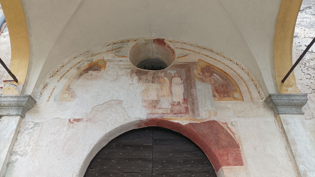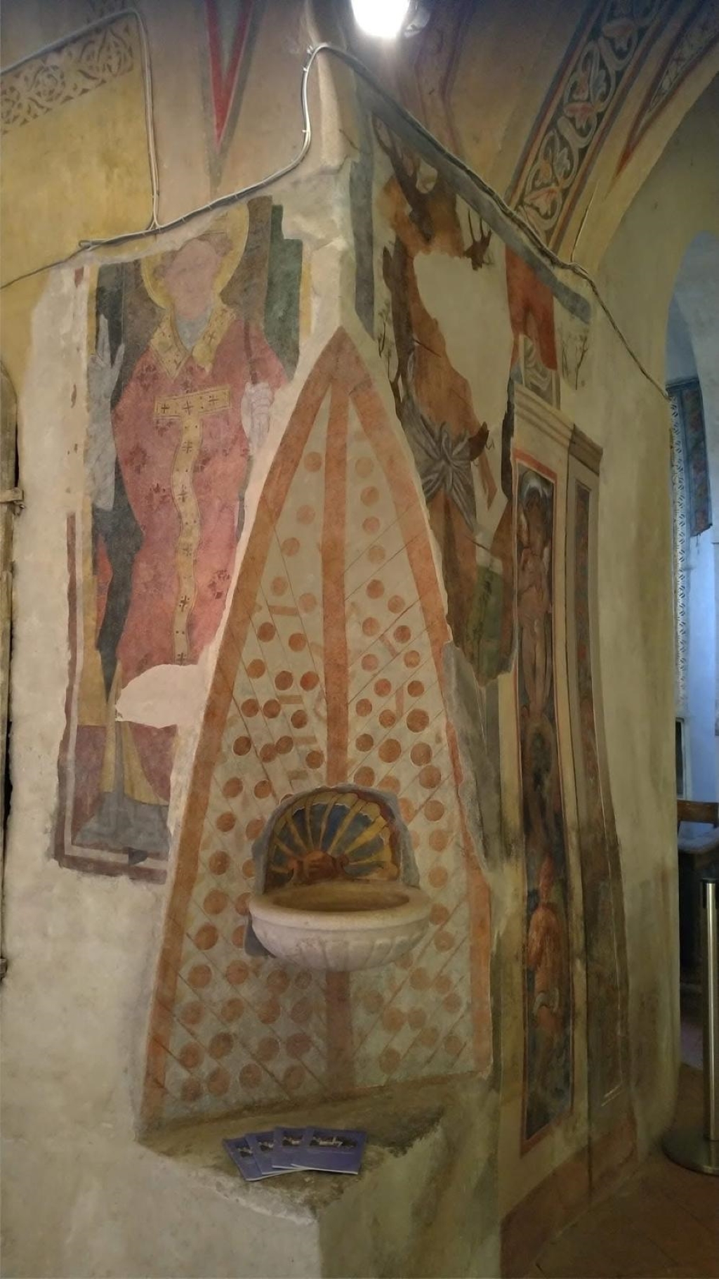 Esterno: affreschi del XVI secolo sulla facciata, tra cui San Cristoforo. |