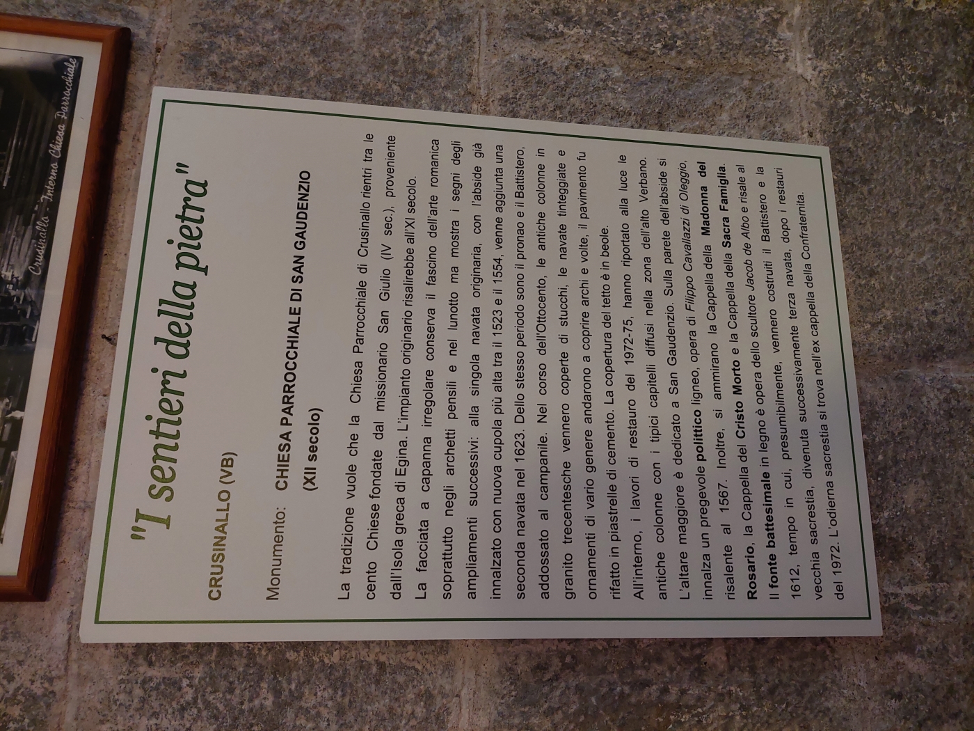 La Chiesa si trova a Crusinallo, Omegna (VB), nota come San Gaudenzio. Periodo prevalente: XV secolo. Livello di interesse: 1 (Interessante). Elementi presenti: architettura, campanile. Da vedere: campanile.