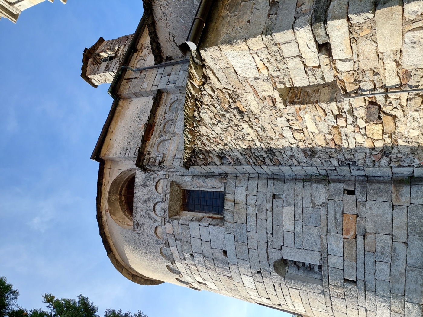 Campanile: originario romanico sino al terzo piano, di epoca antecedente alla chiesa, rifatto superiormente in epoca barocca. |