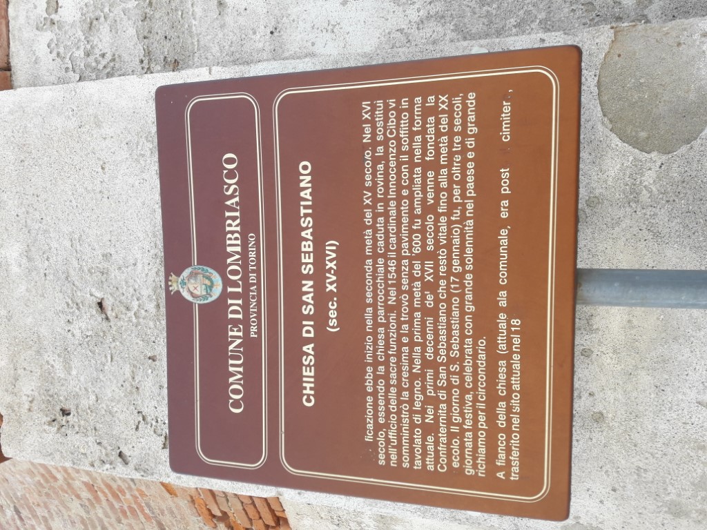 La Chiesa si trova a Lombriasco (TO), nota come San Sebastiano. Periodo prevalente: XV secolo. Livello di interesse: 0 (Segnalata). Elementi presenti: architettura. Da vedere: .