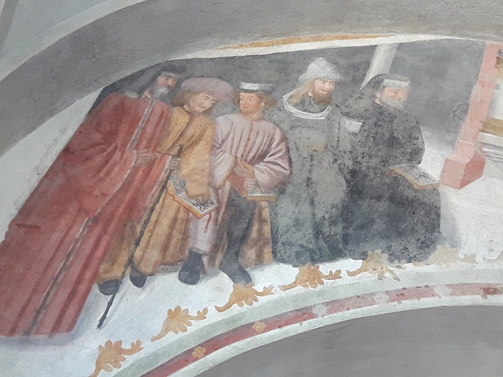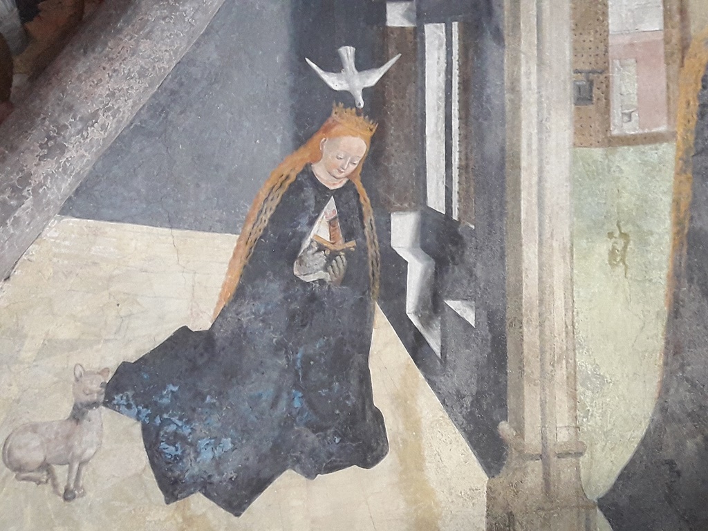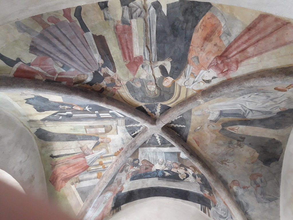 affreschi, scene della vita della vergine, dell'ultimo quarto del secolo XV, di ambito tardo gotico influenzato dall'arte francese. |